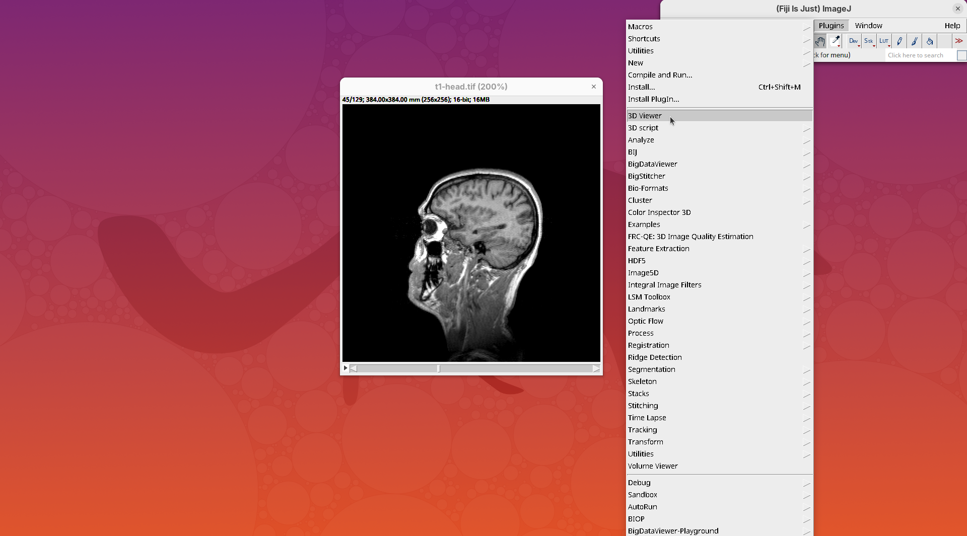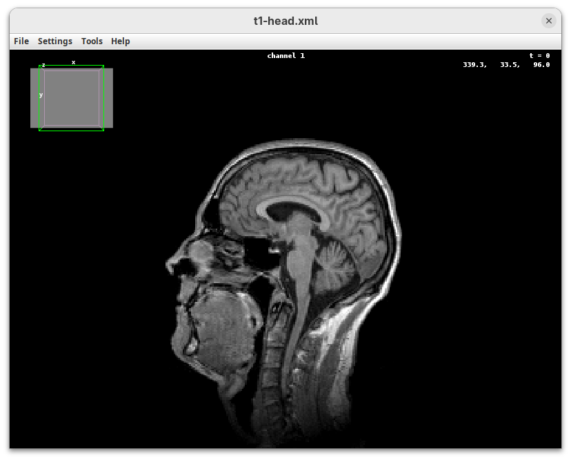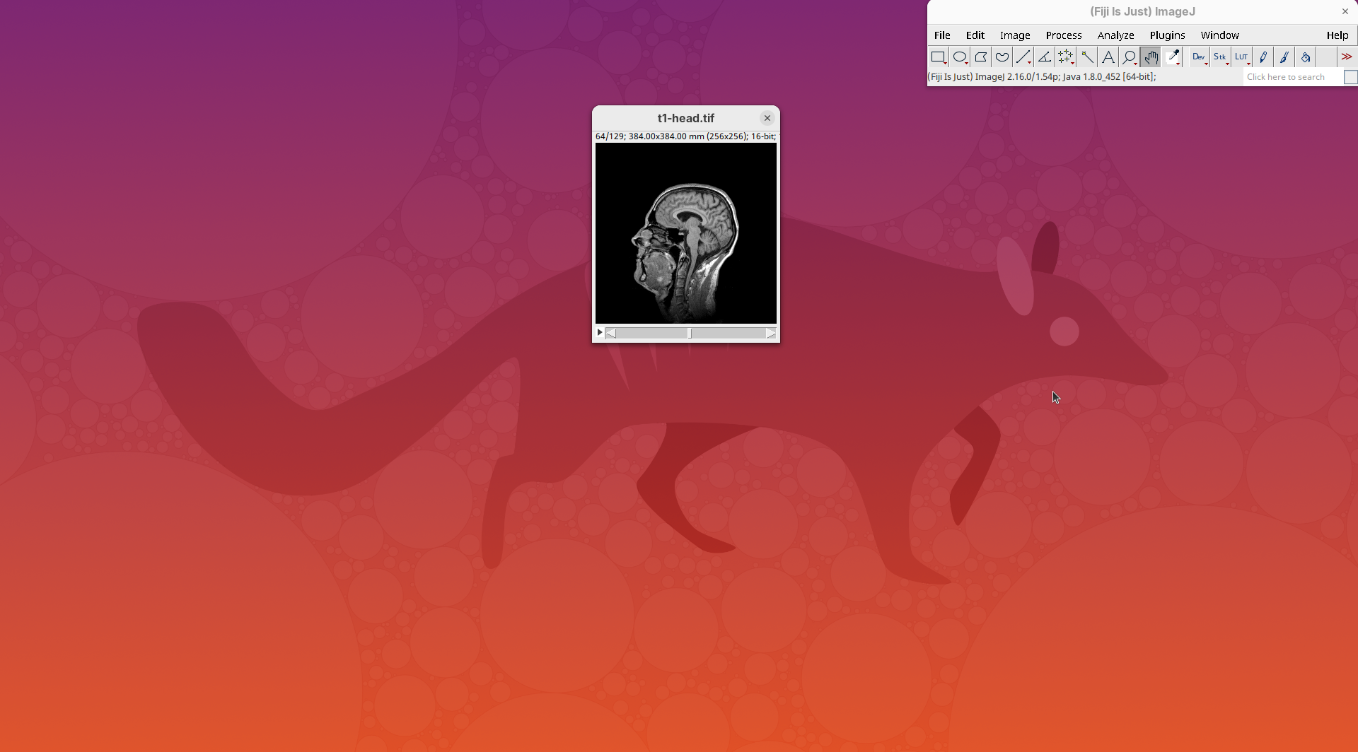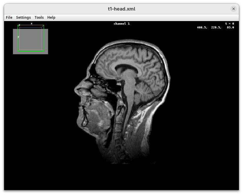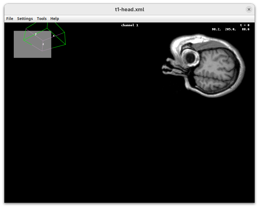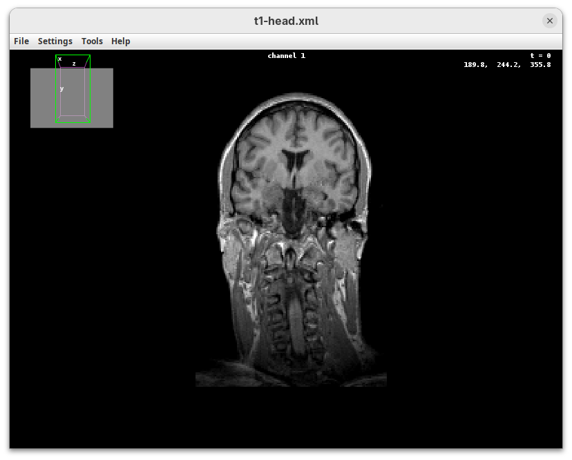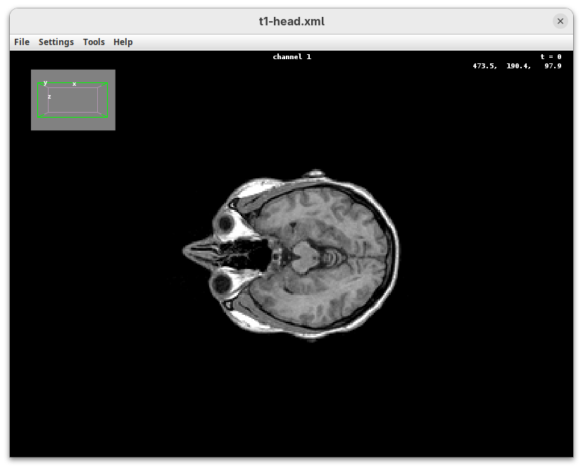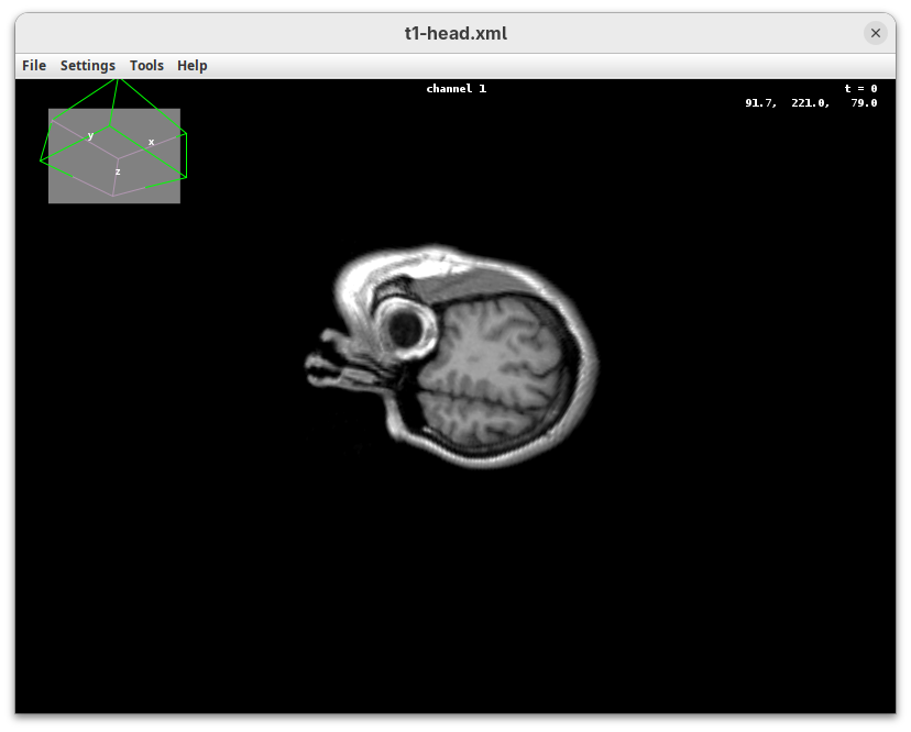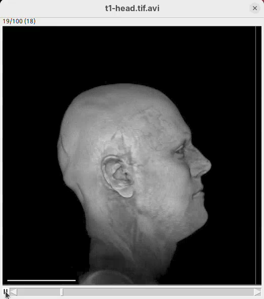 We will begin by visualizing an MRI dataset of a human head that is bundled in Fiji.