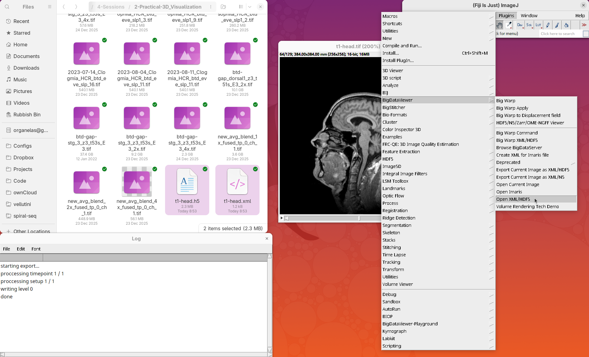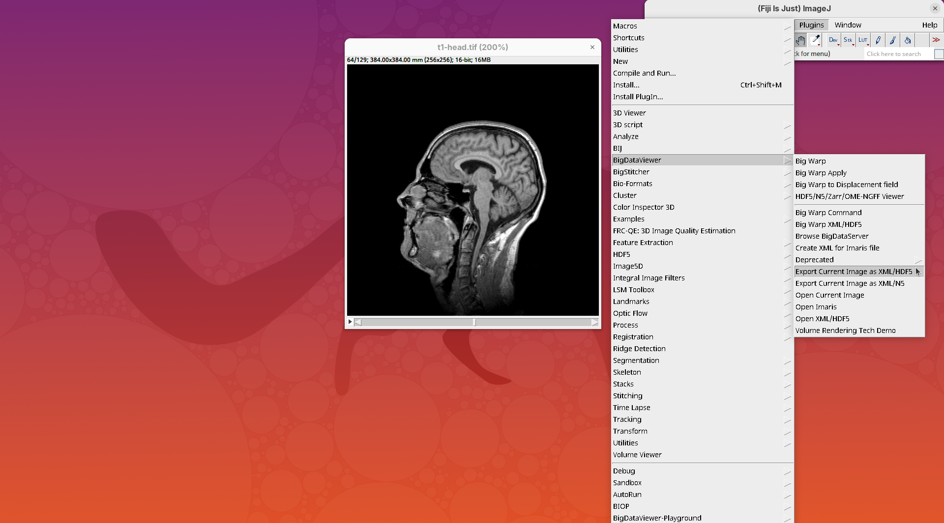 T1 Head (16-bits)dataset is included in Fiji; no need to download in advance.btd-gap-stg_3_z3_t53s_E3_4x.tifdataset from this Zenodo repository (Vellutini 2025). The direct link to the file is here (2.3GB).