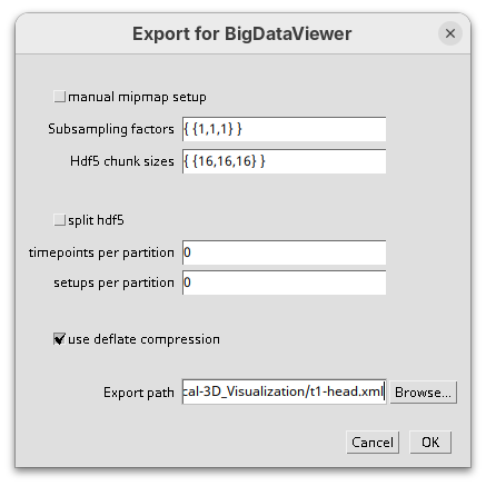 BigDataViewer (Pietzsch et al. 2015) is one of the most important tools for visualizing large, multidimensional datasets. It provides a simple and intuitive interface and shortcuts to swiftly navigate through your sample even on a regular laptop. This is possible because of the underlying file format used by BigDataViewer: the XML/HDF5 combo. Therefore, before opening the plugin, we must convert our dataset.