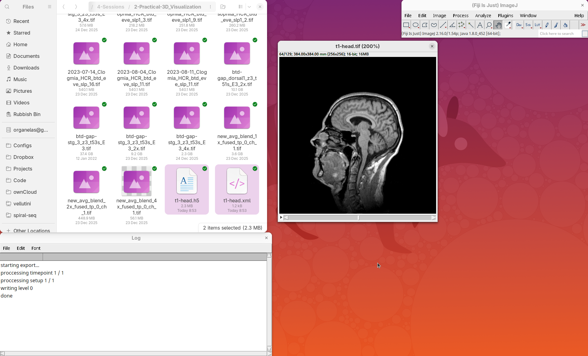 When done, you will find two new files in your working directory: t1-head.xml and t1-head.h5.
