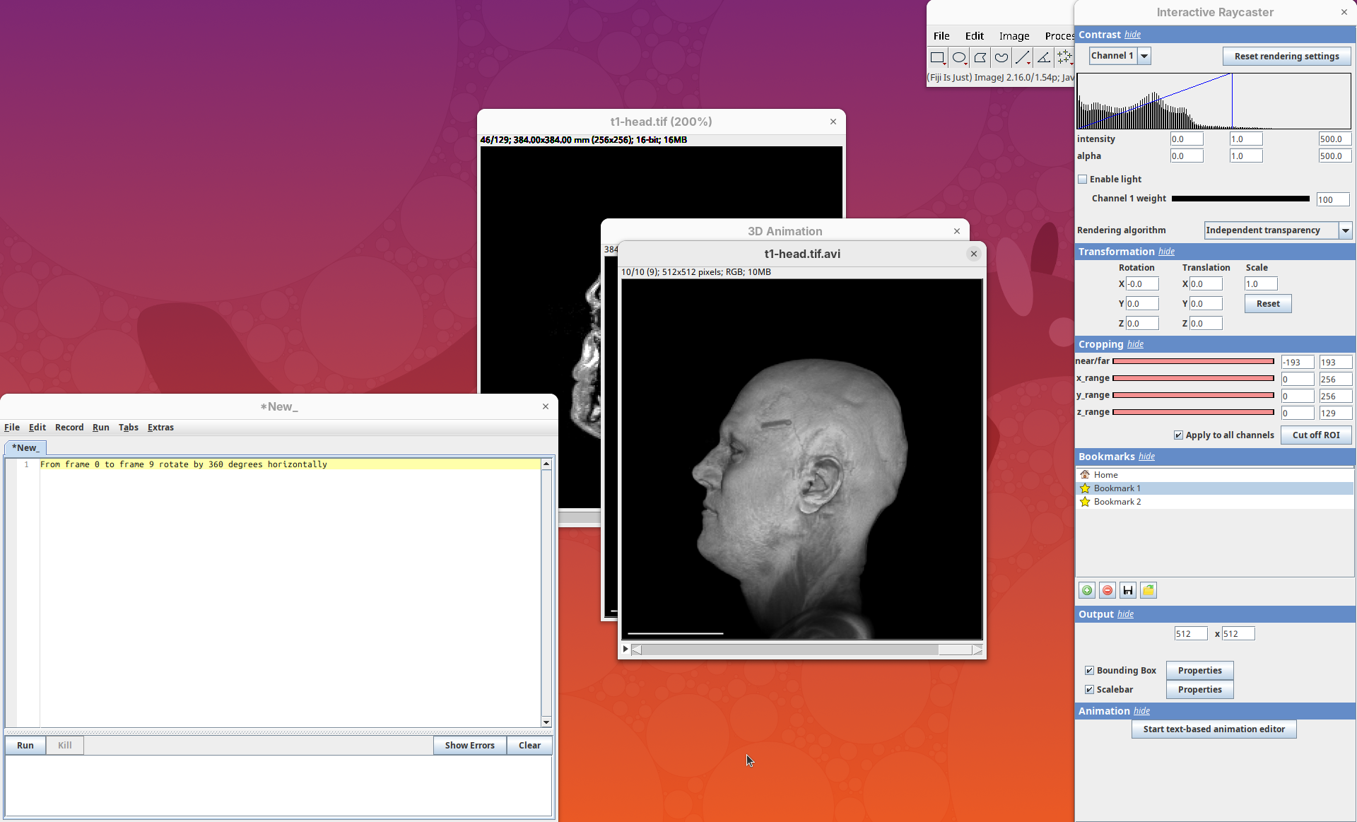 Image>Stacks>3D Project...and clickOKto generate a basic animation.