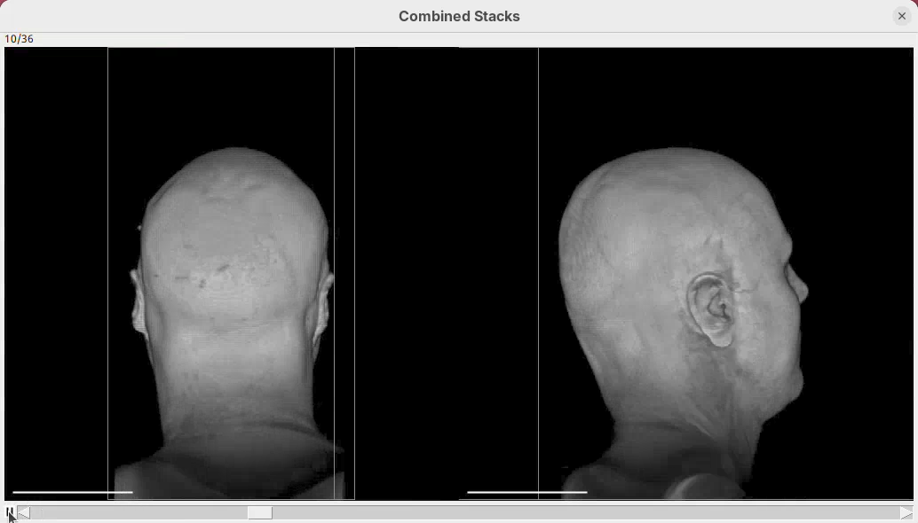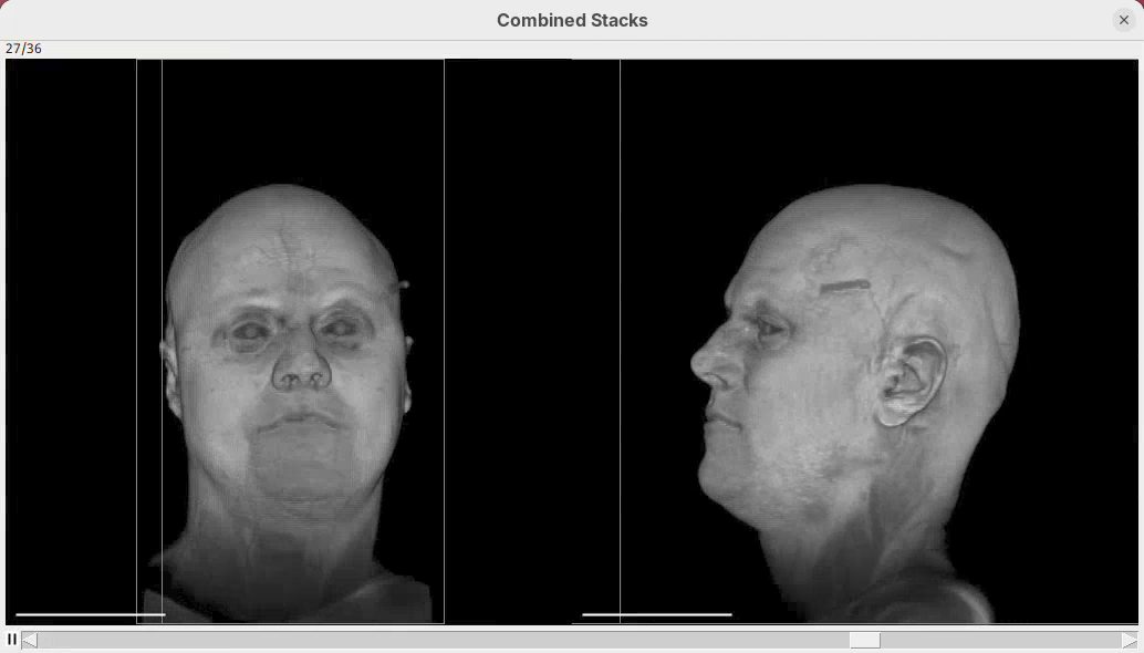 Even though the original dataset would not even fit in the memory of today’s high-end laptops, we would still be able to generate animations using 3Dscript. That’s because 3Dscript works with the so-called Virtual Stacks in Fiji. This is a way to open large stacks without loading all the image data into memory (only what’s current on view is loaded). Virtual stacks are really, really great. Let’s open and inspect the new dataset as a virtual stack.