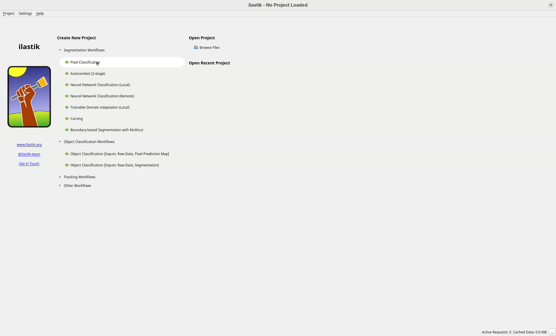 - Download ilastik 1.4.1.post1 (direct link for Linux/MacOS/Windows).