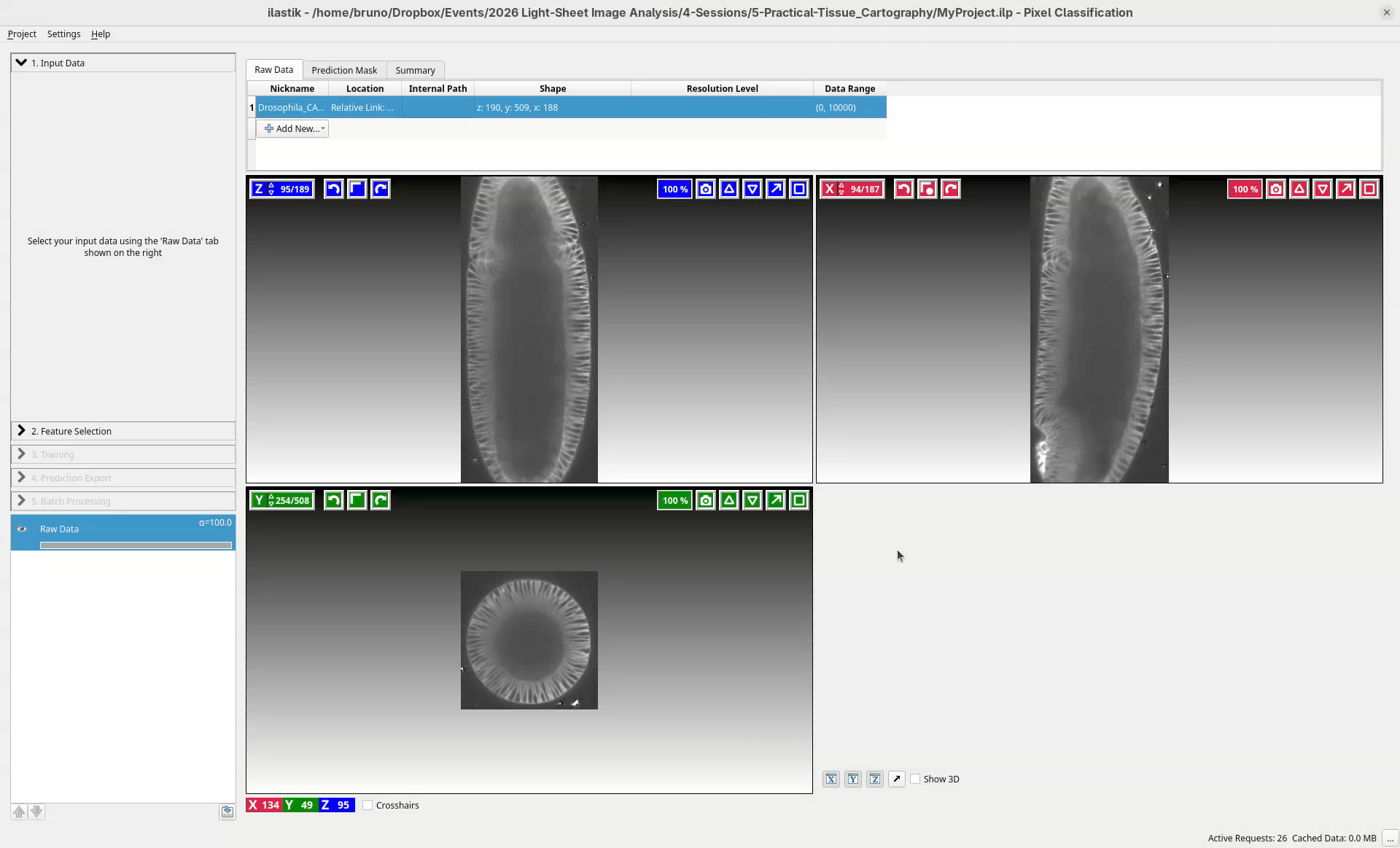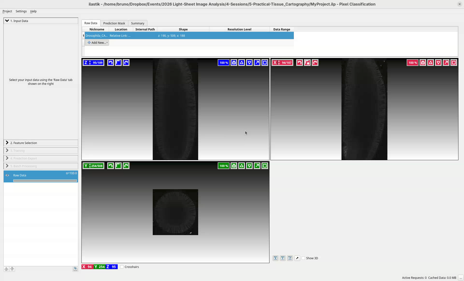 The ilastik interface is ready to define our input data.