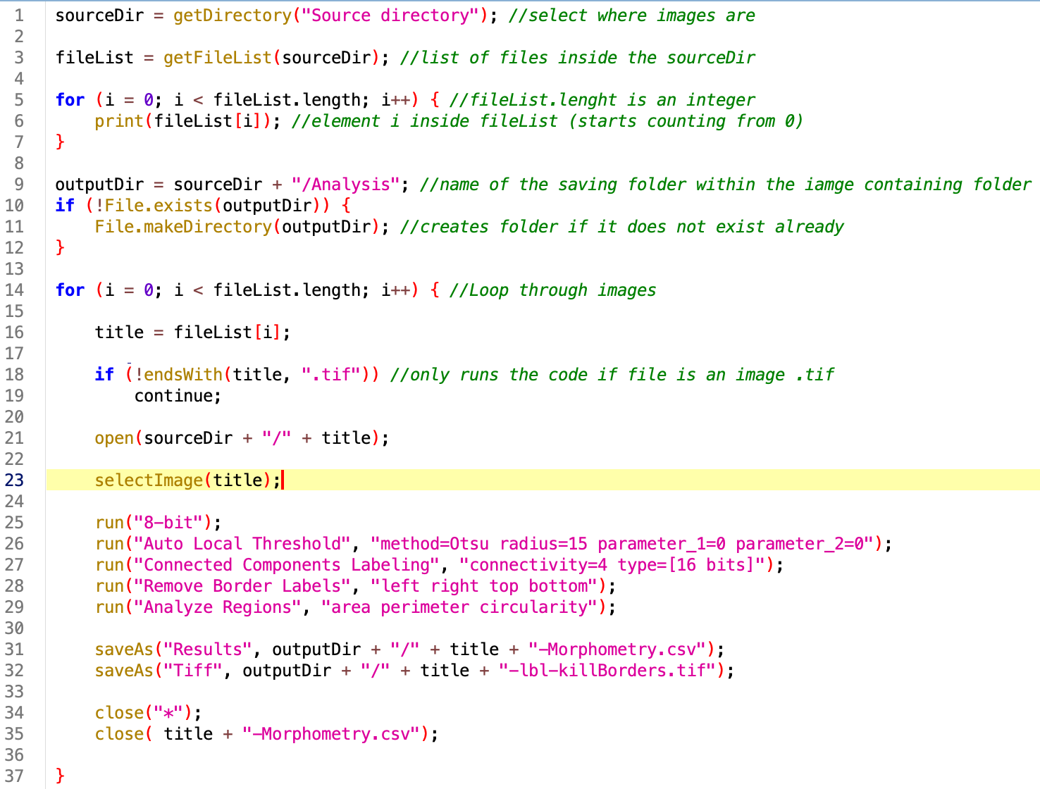 outputDir = sourceDir + "/Analysis"; //name of the saving folder within the iamge containing folder