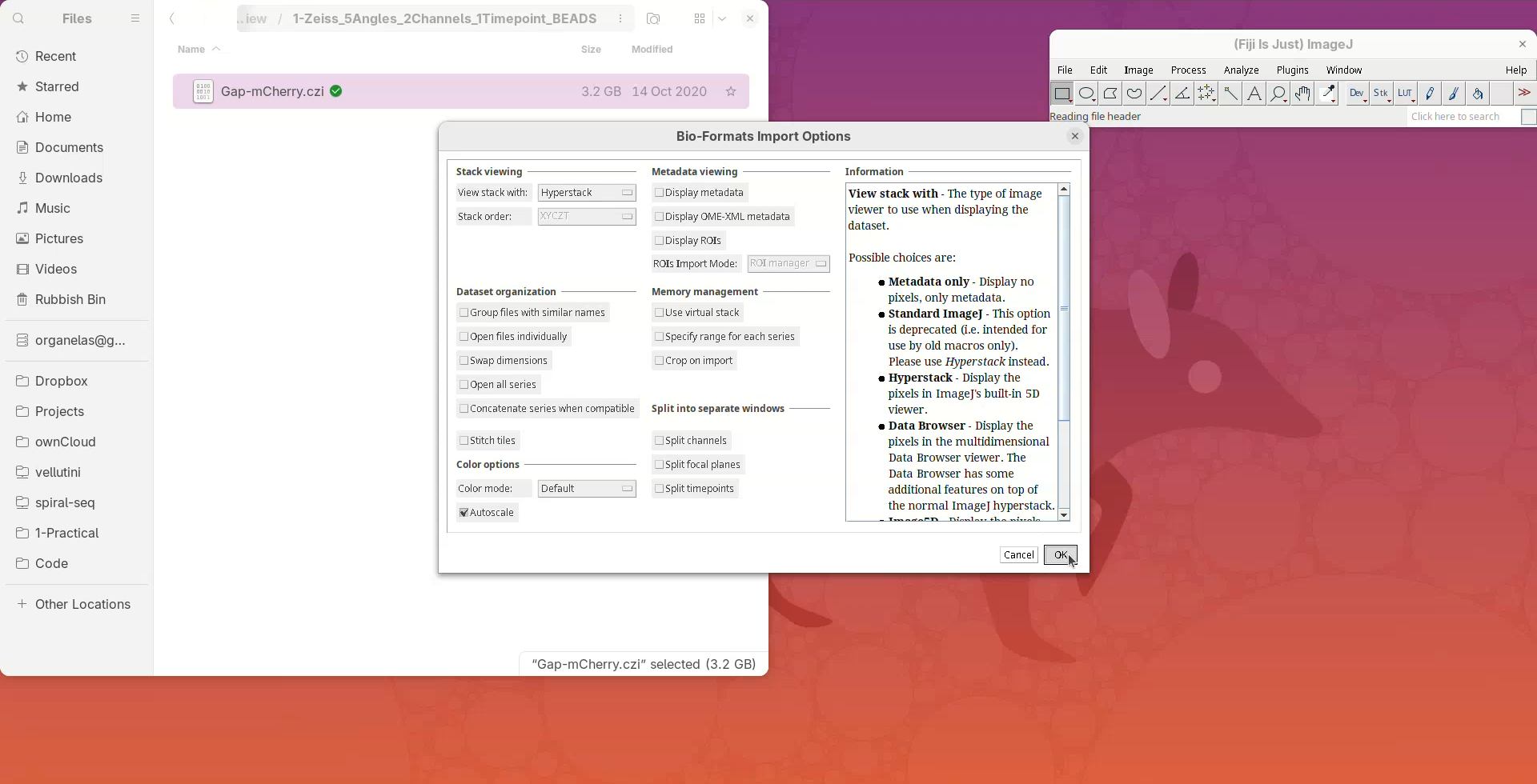 A Bio-Formats Import Options window should open. That’s the default importer for proprietary file formats with many options, but for now we go with the default.