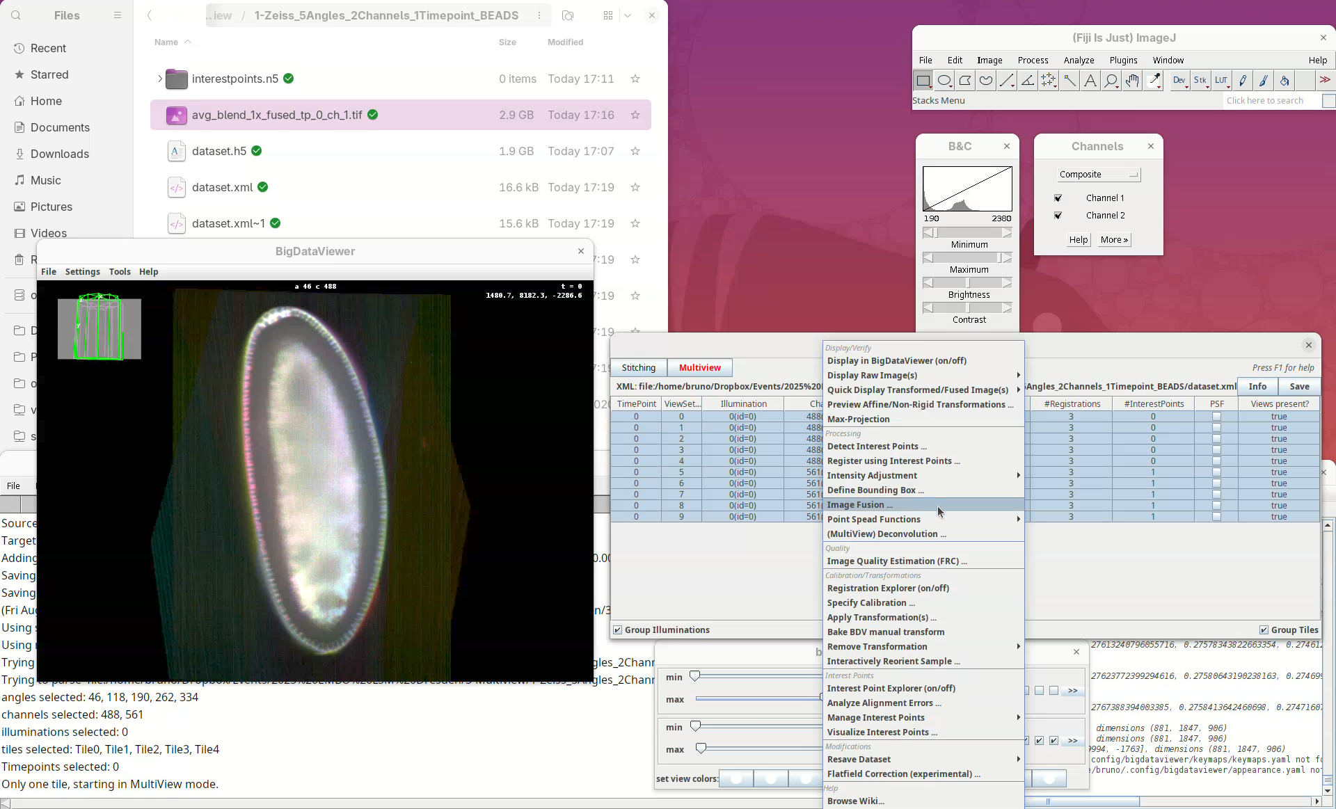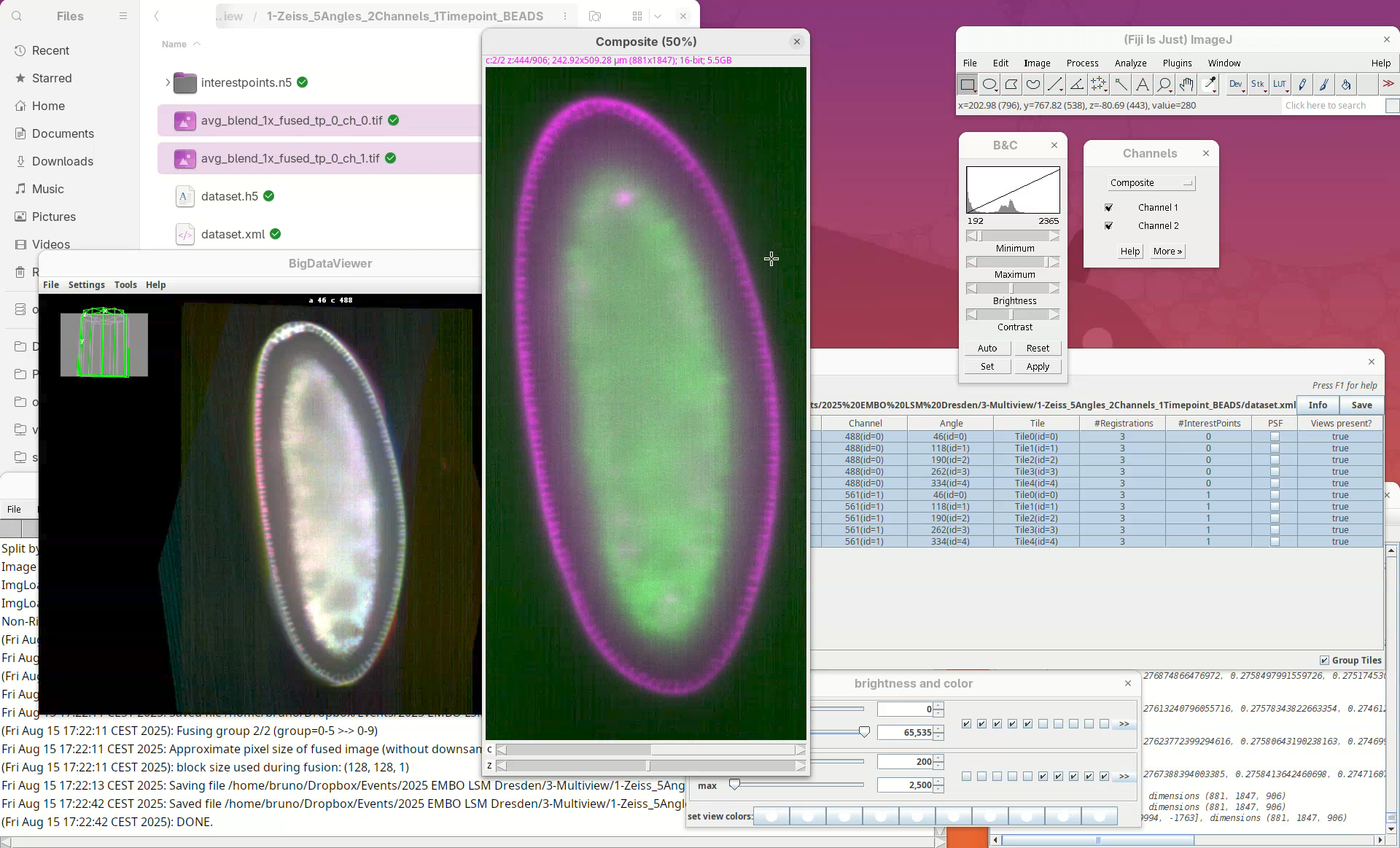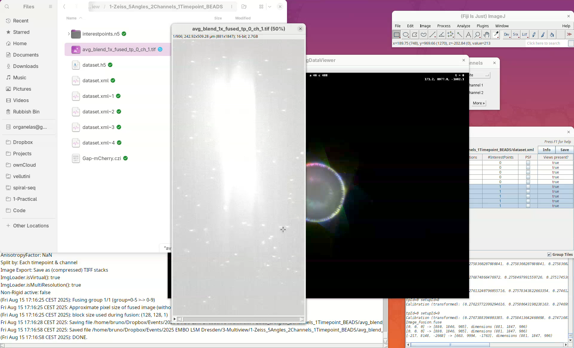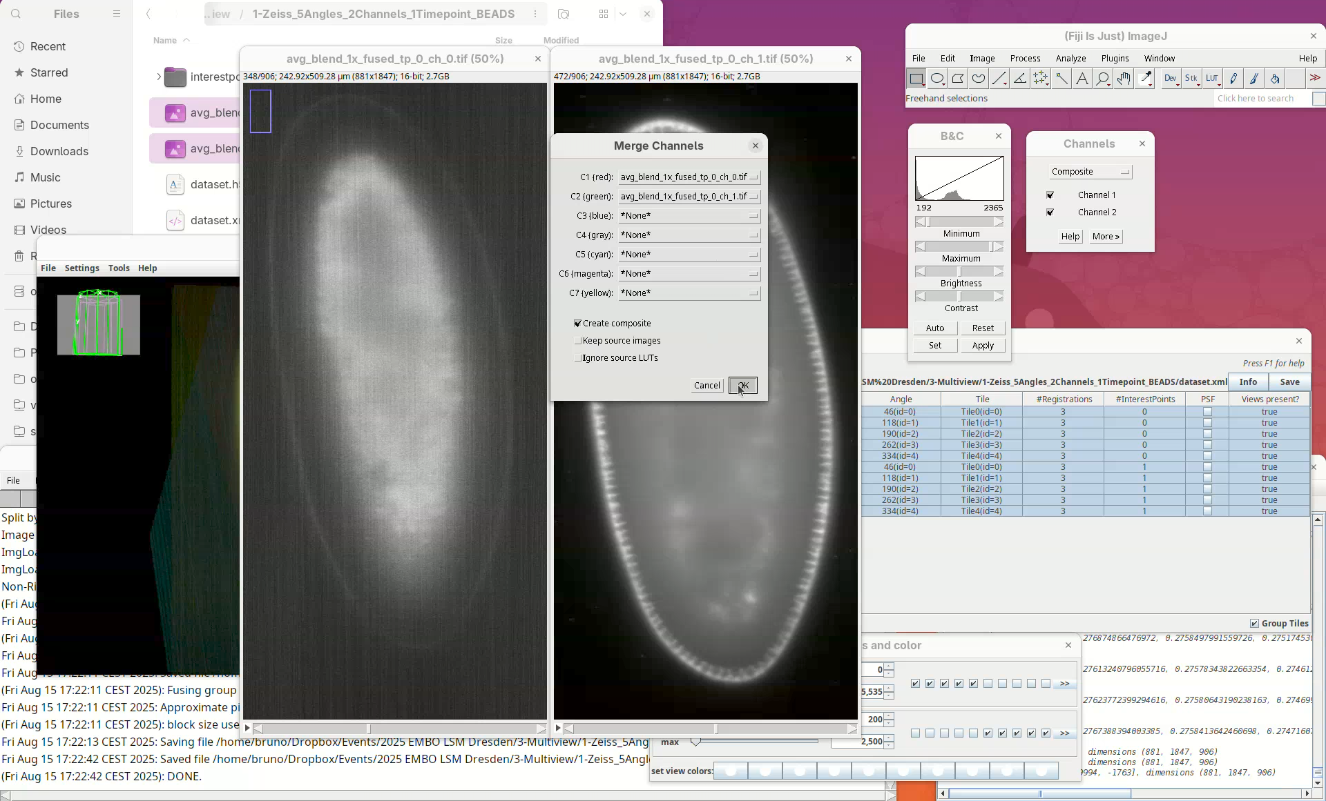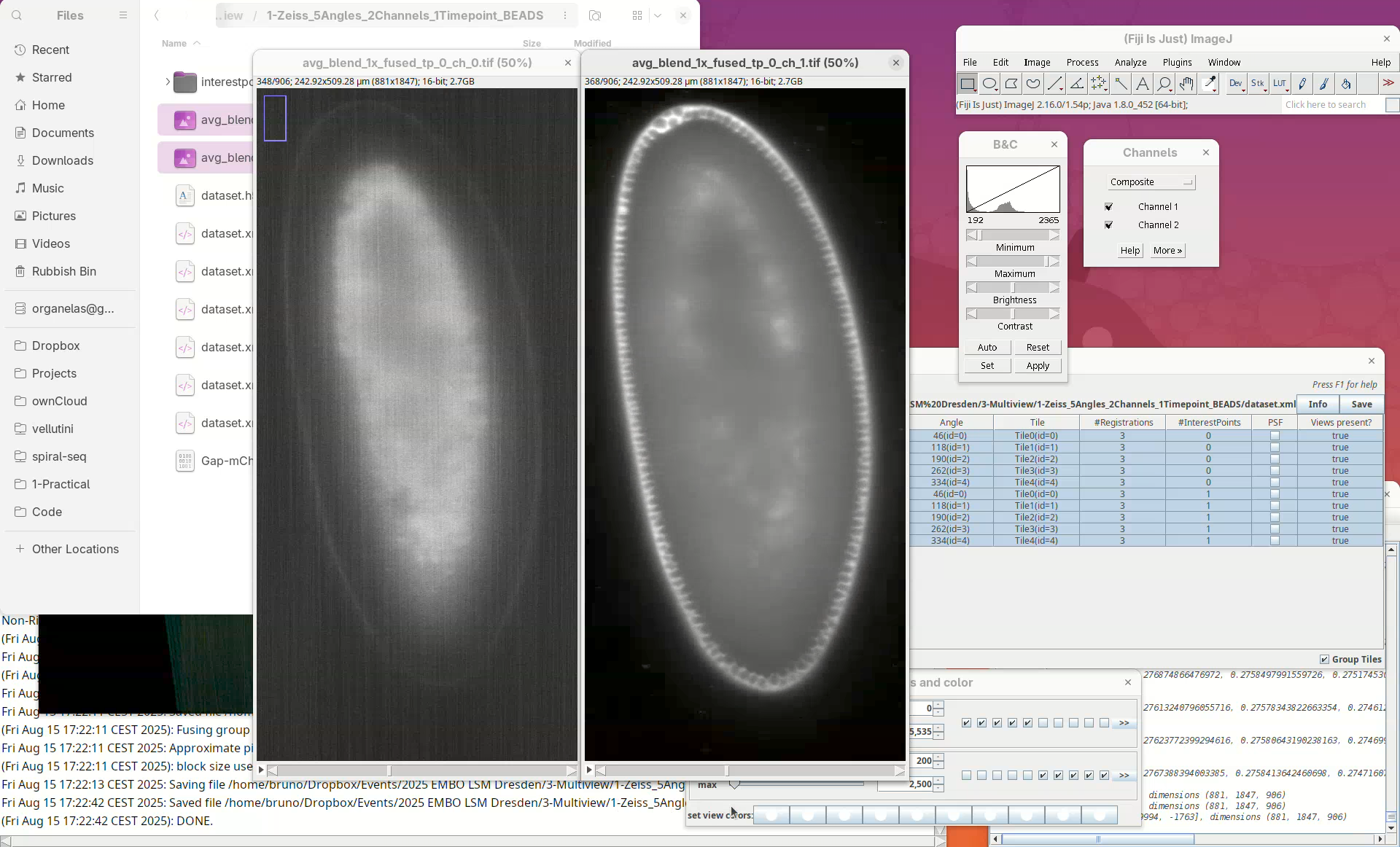 This time there will be two files as output: avg_blend_1x_fused_tp_0_ch_0.tif and avg_blend_1x_fused_tp_0_ch_1.tif.