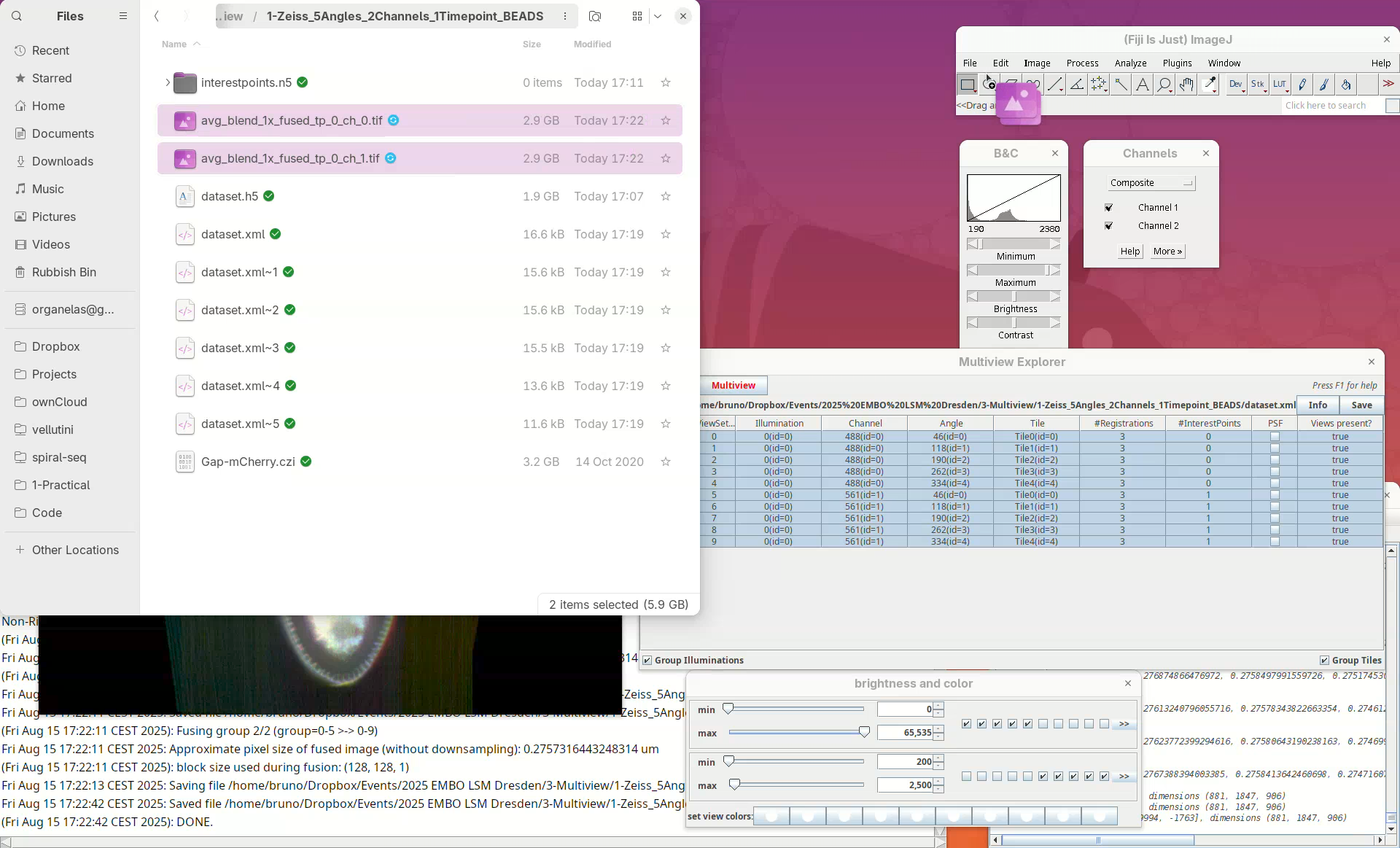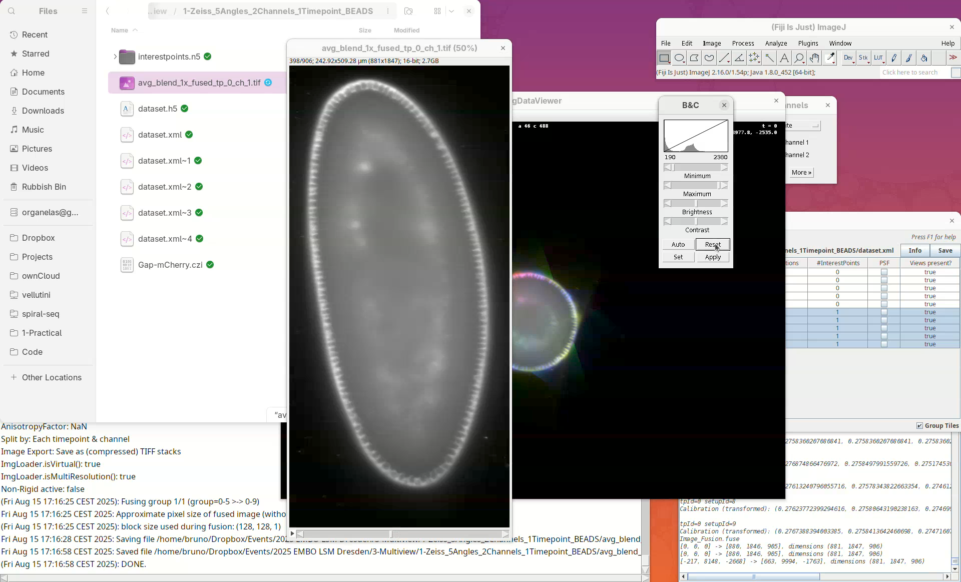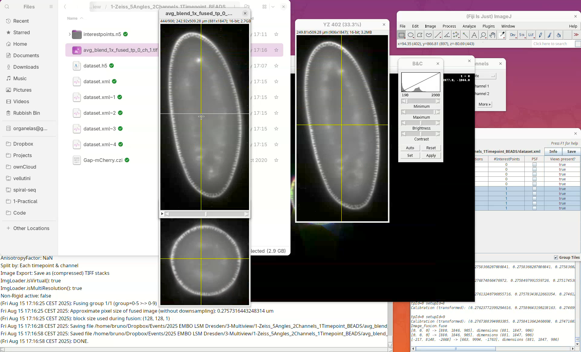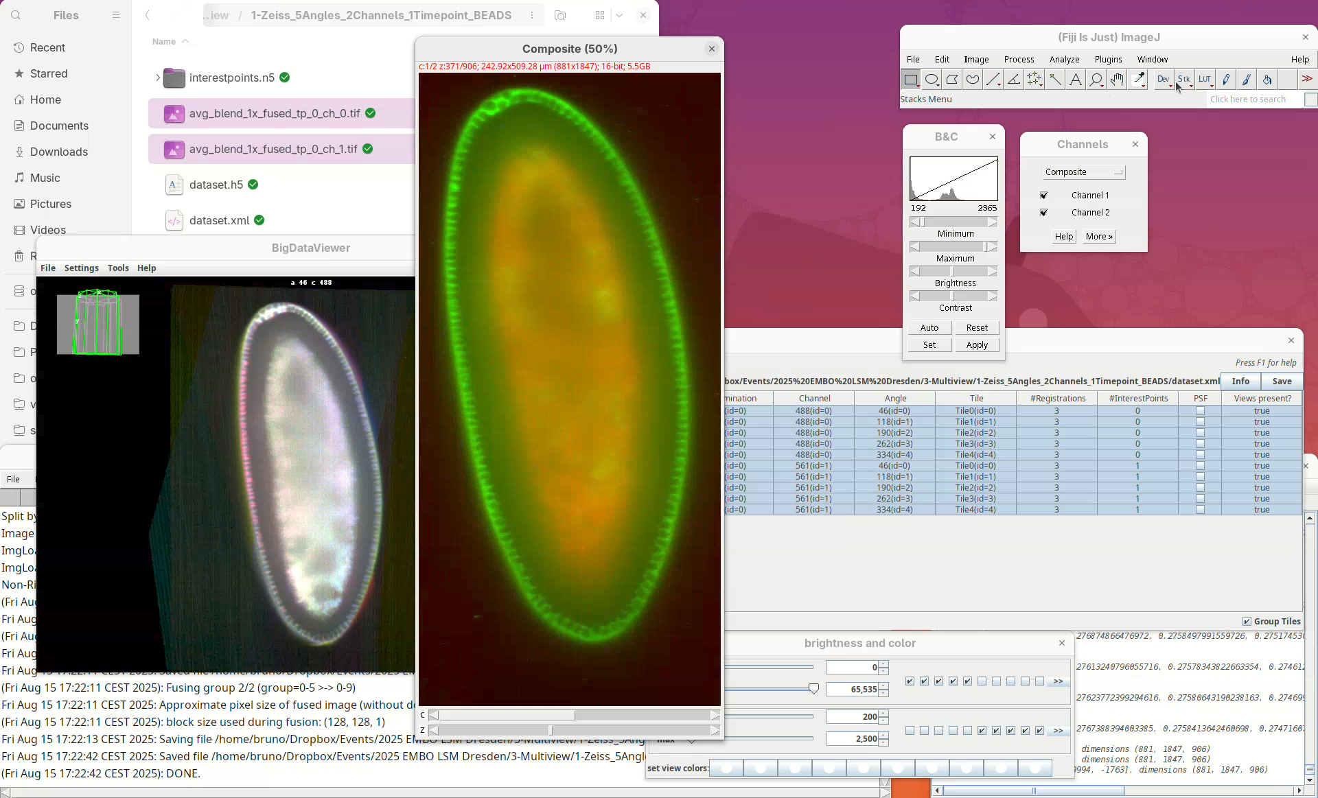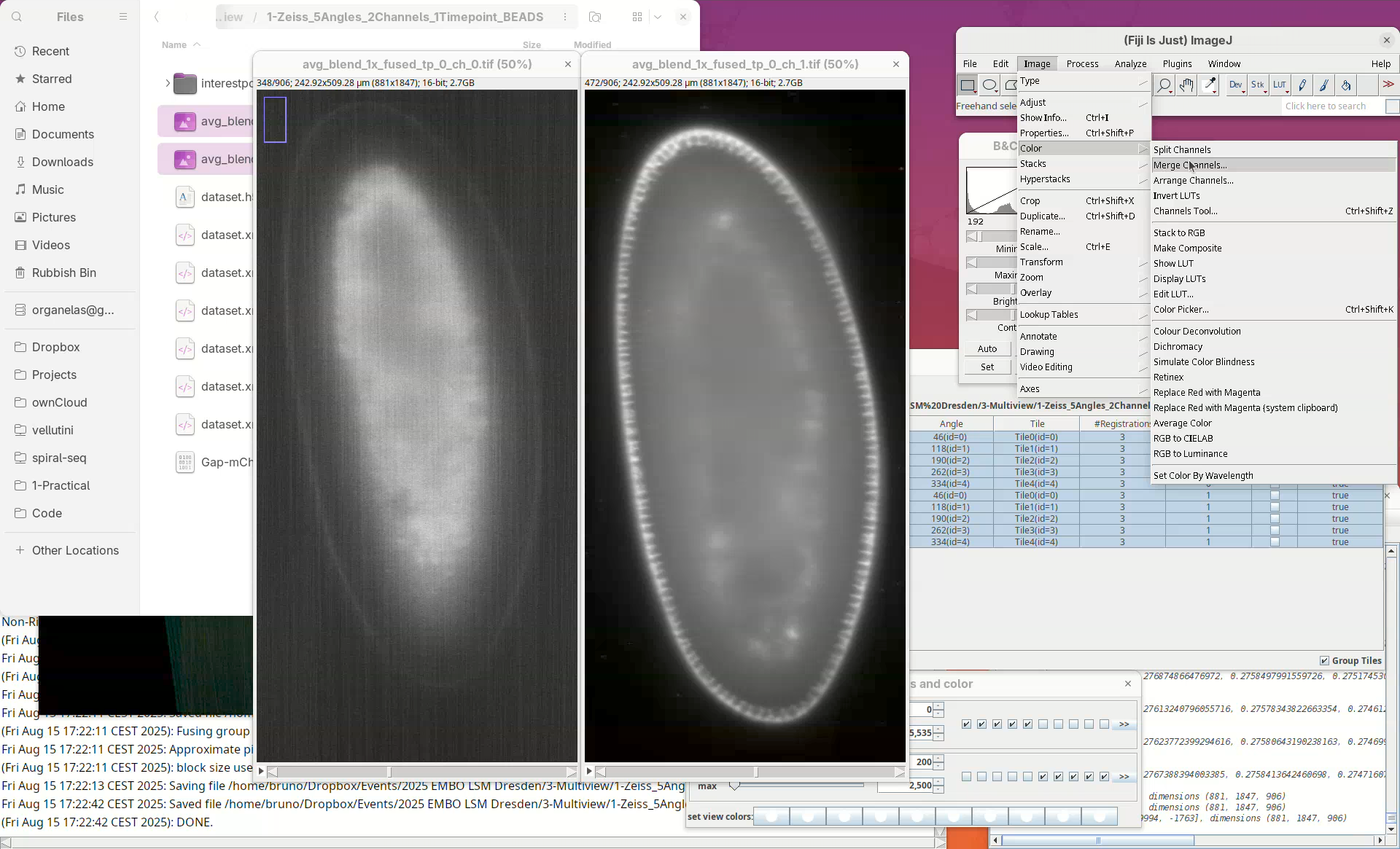 This time there will be two files as output: avg_blend_1x_fused_tp_0_ch_0.tif and avg_blend_1x_fused_tp_0_ch_1.tif.