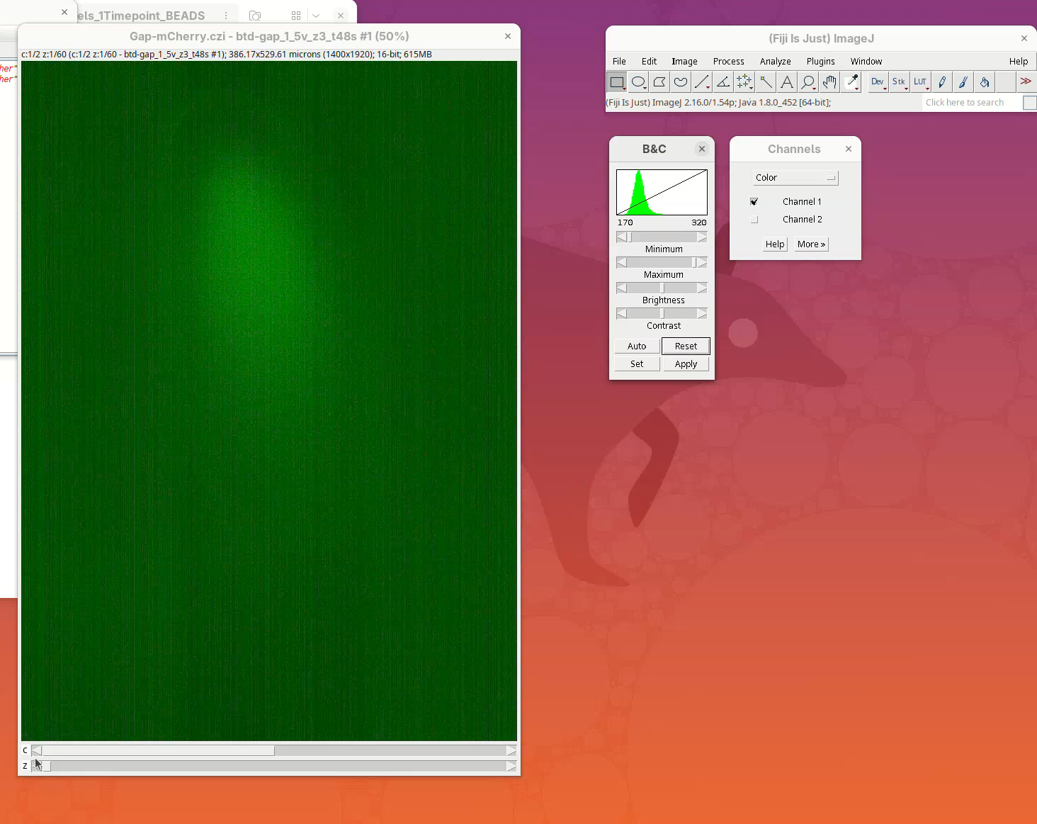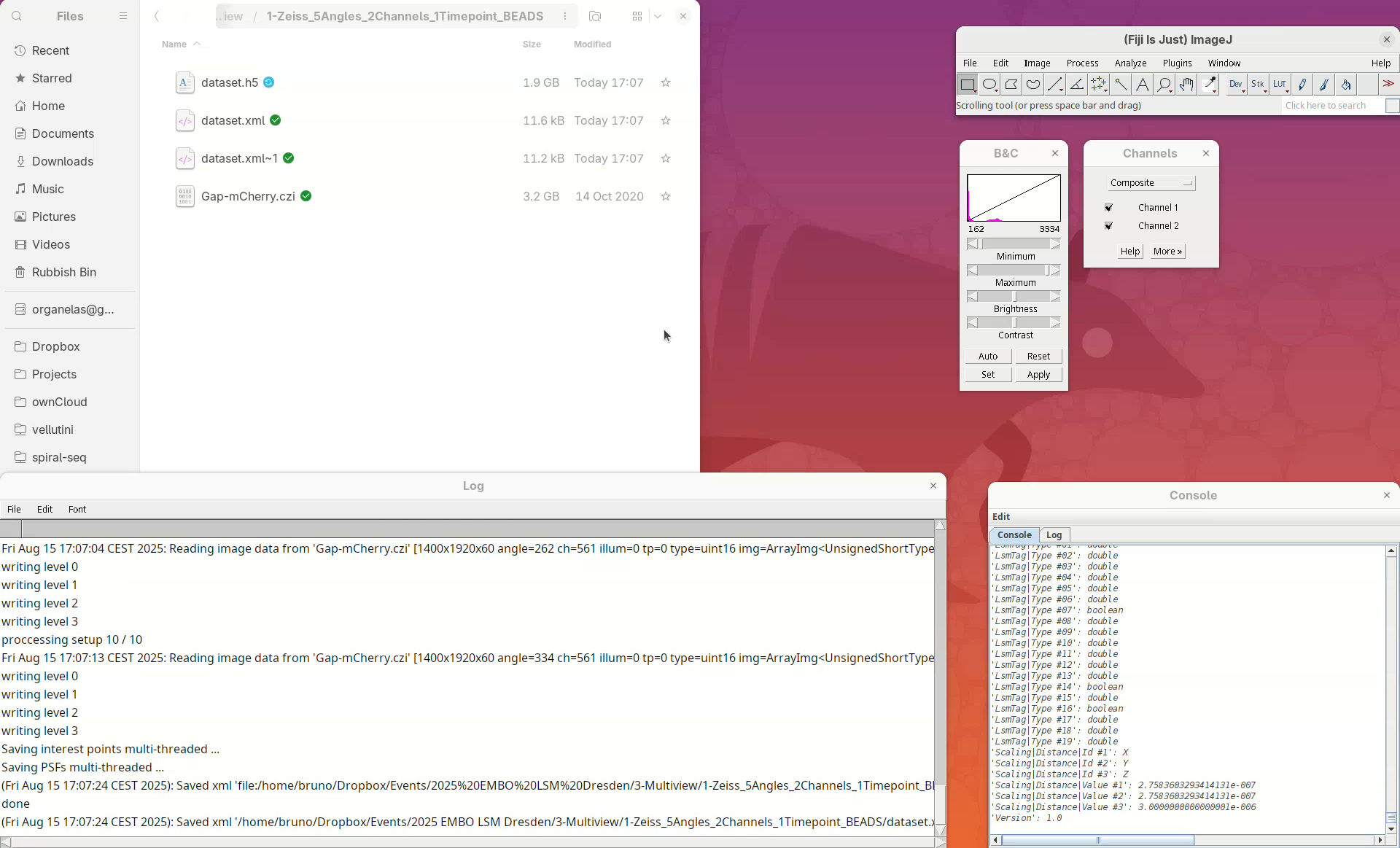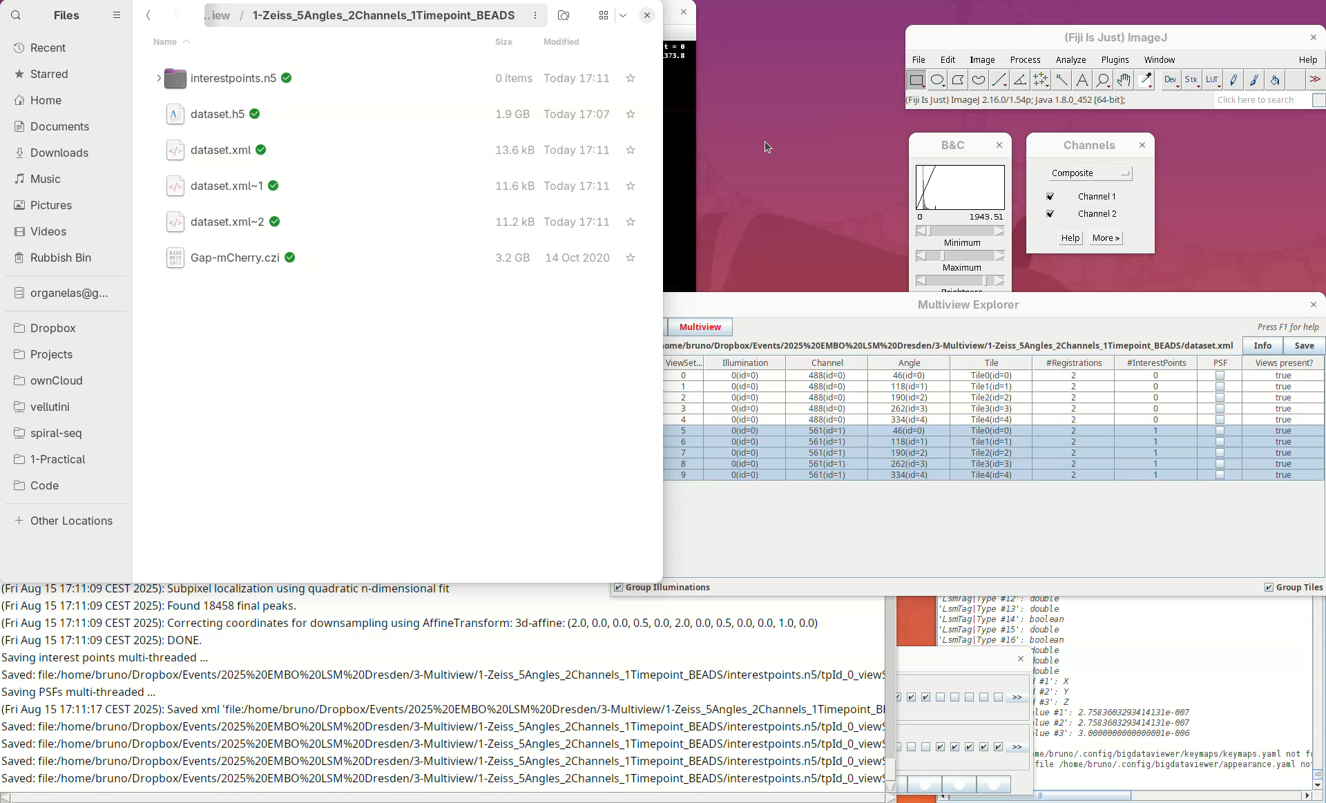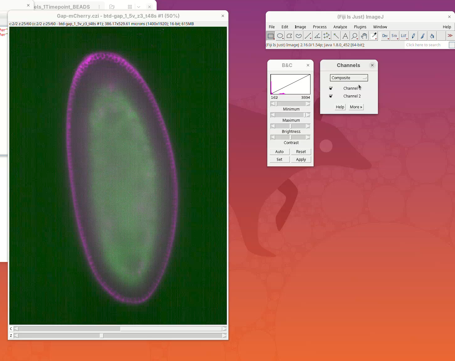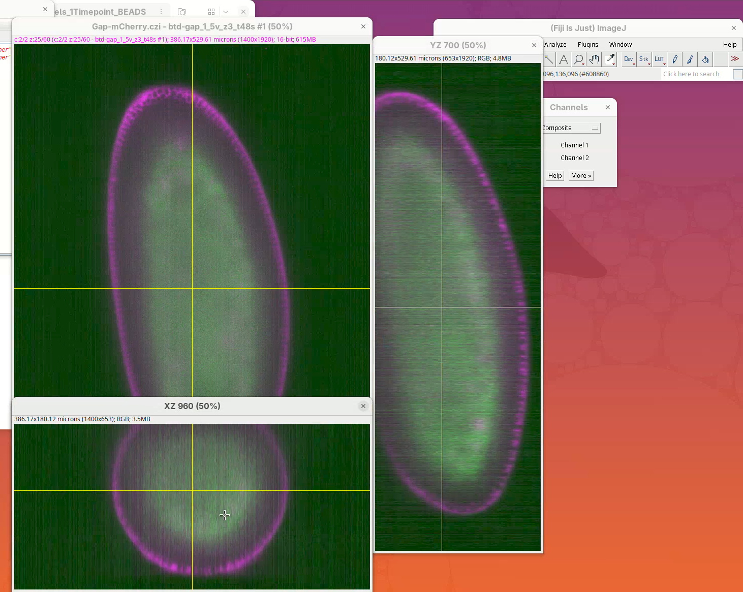 This time there will be two files as output: avg_blend_1x_fused_tp_0_ch_0.tif and avg_blend_1x_fused_tp_0_ch_1.tif.