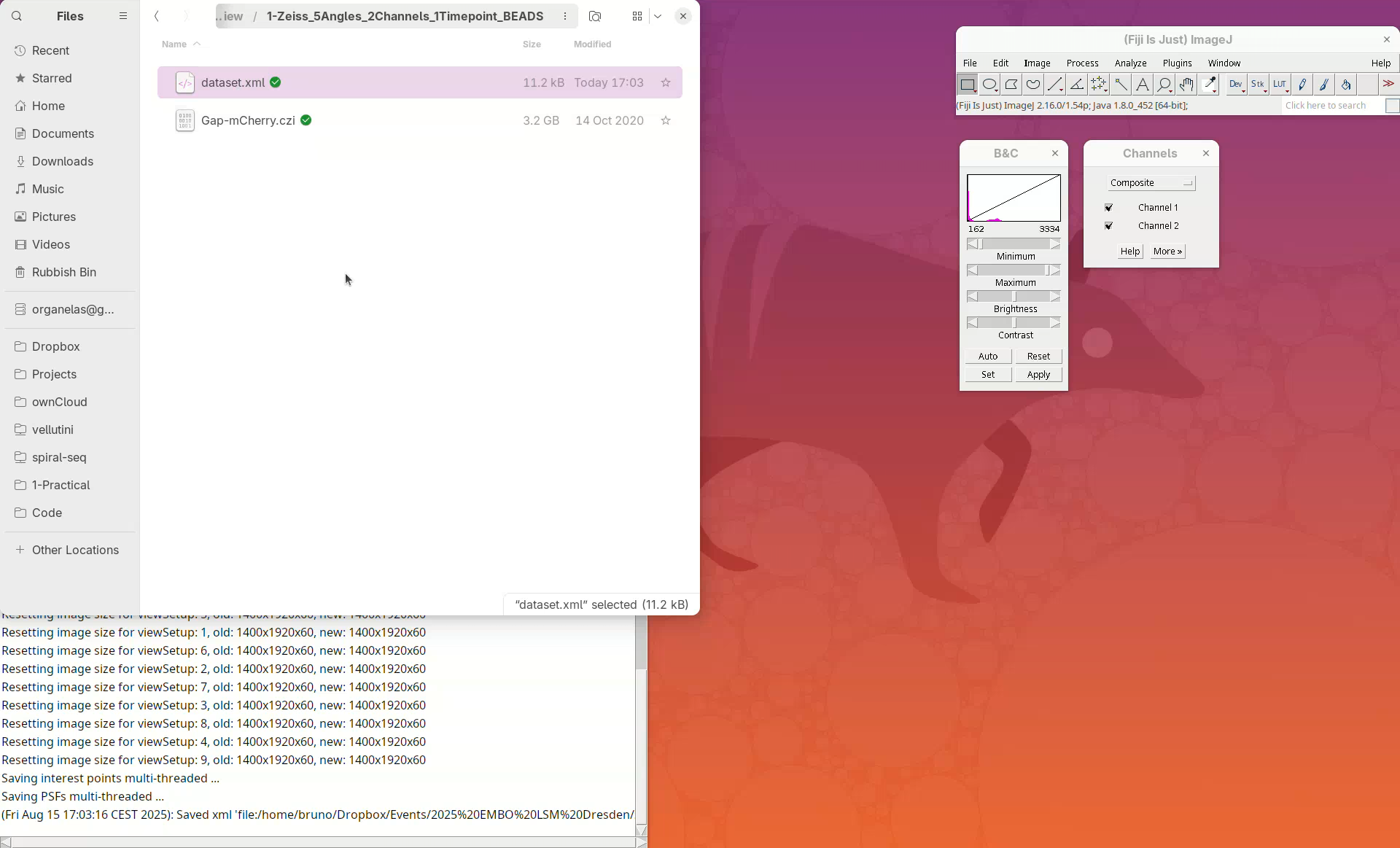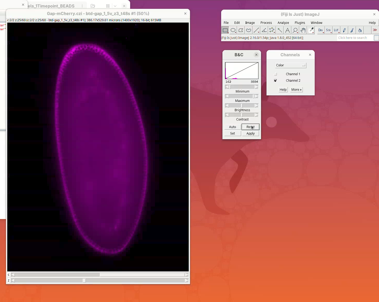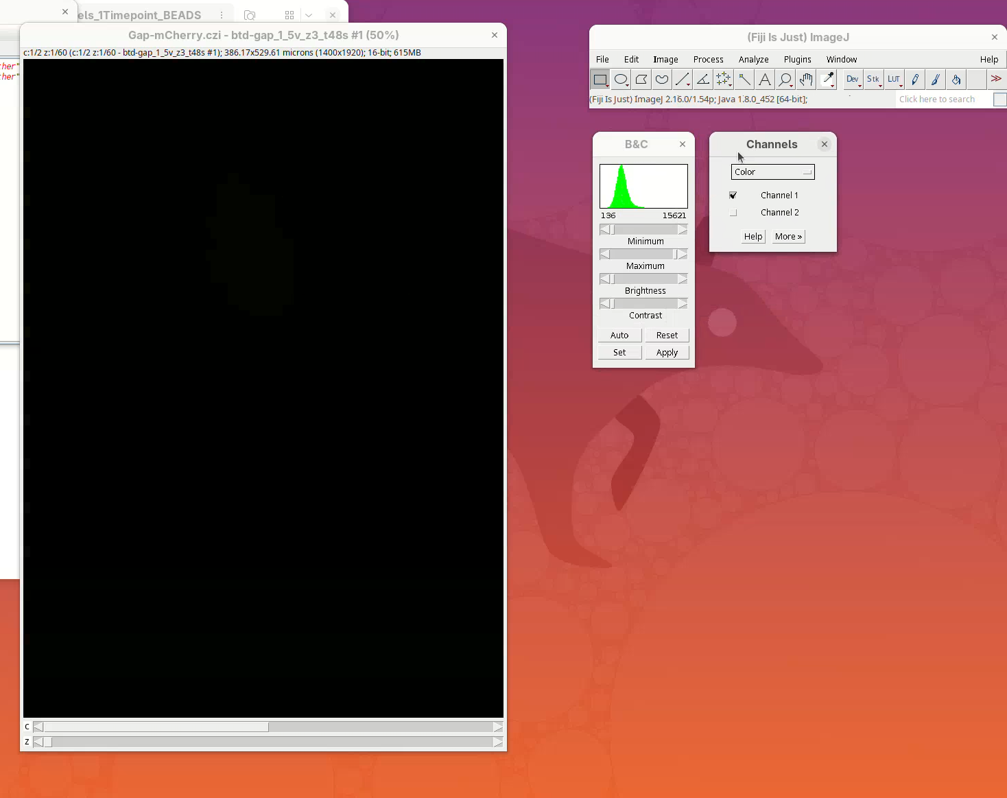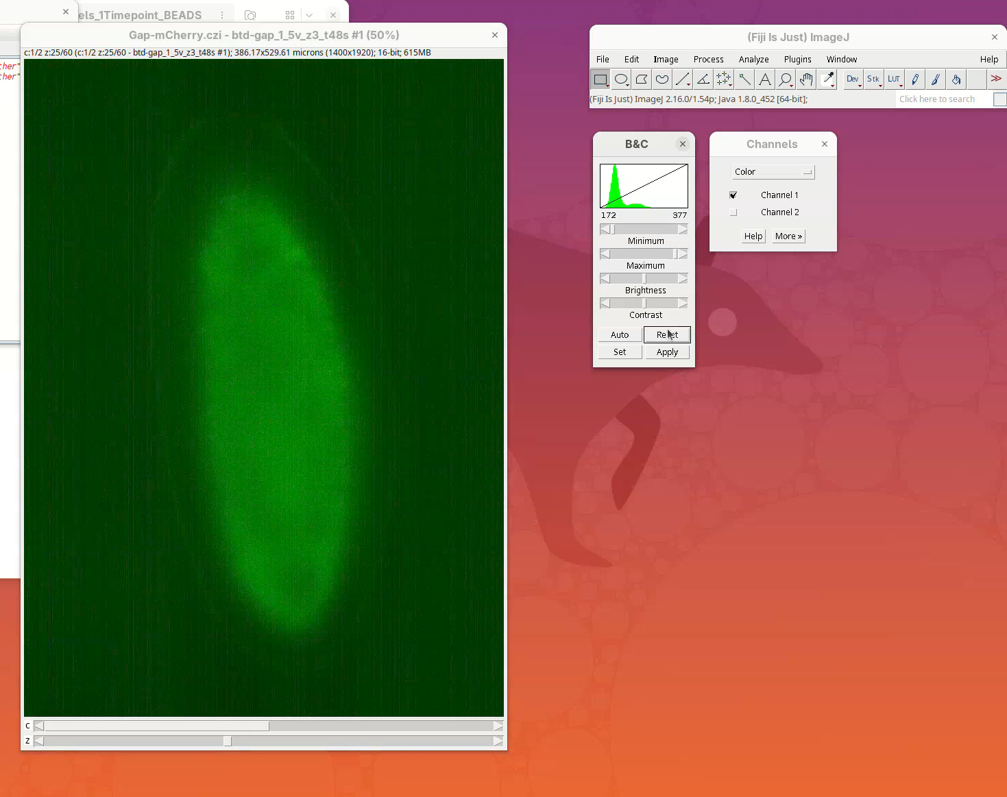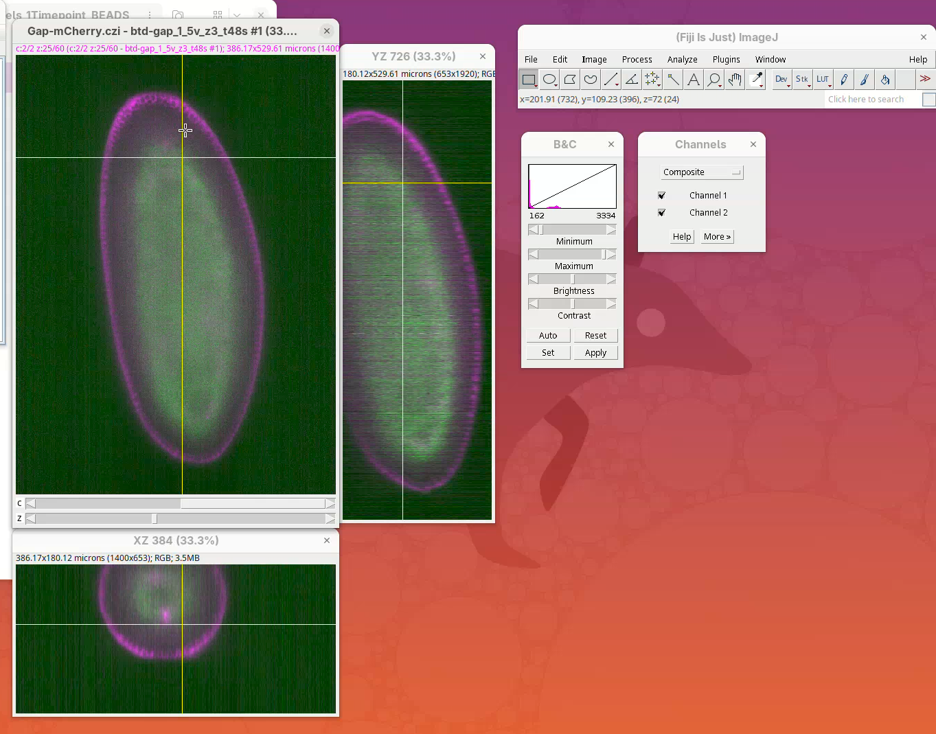 This time there will be two files as output: avg_blend_1x_fused_tp_0_ch_0.tif and avg_blend_1x_fused_tp_0_ch_1.tif.