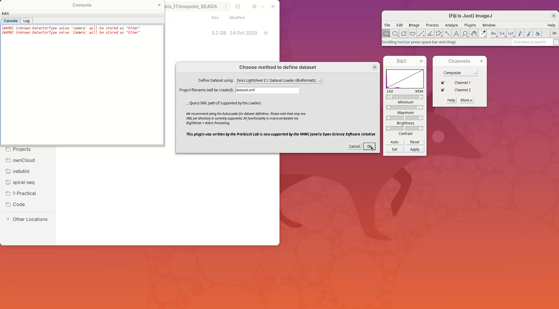 Define Datasetfield chooseZeiss Lightsheet Z.1 Dataset Loader (Bioformats)from the dropdown menu, since our testing dataset is from Zeiss Lightsheet Z.1. - Then, press