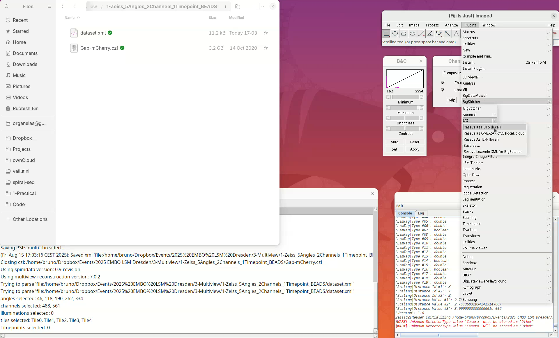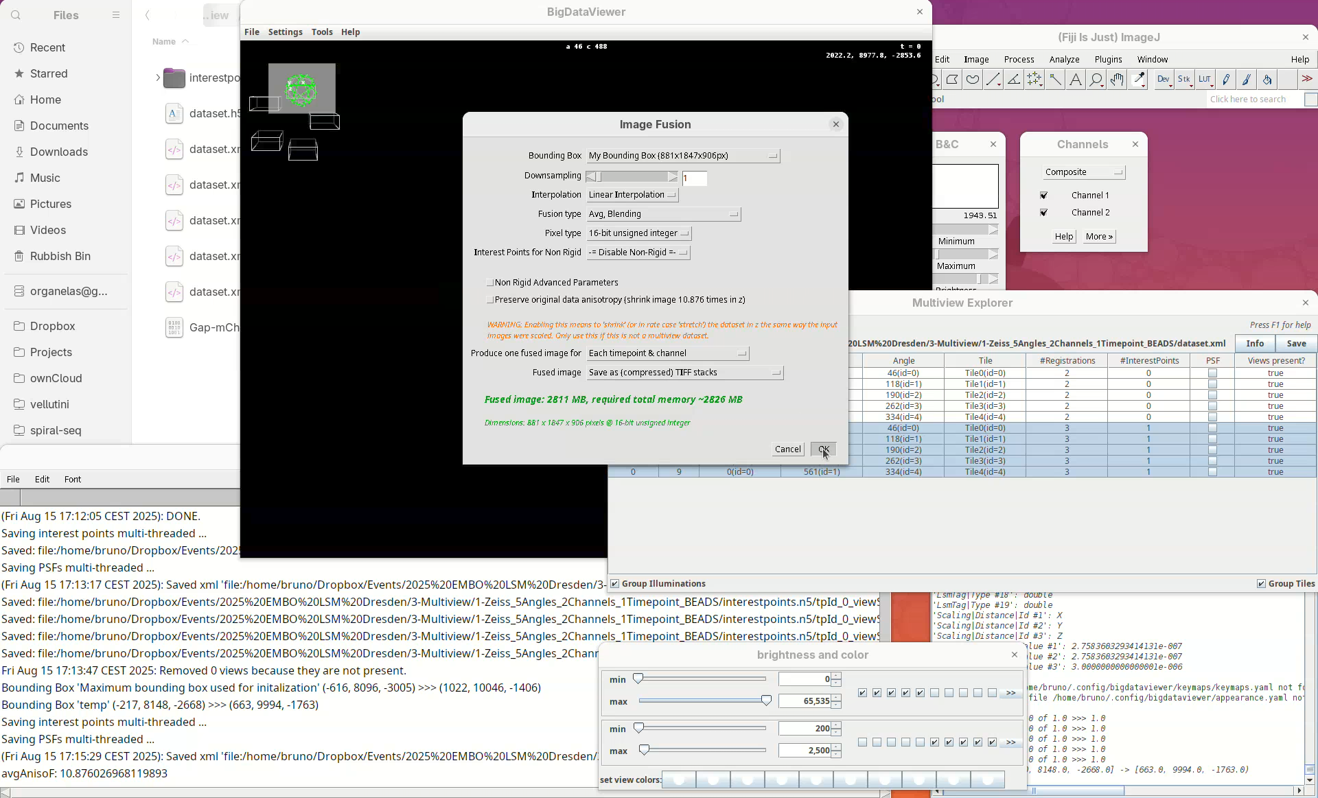 Fused imagetoSave as (compressed) TIFF stacks.Press