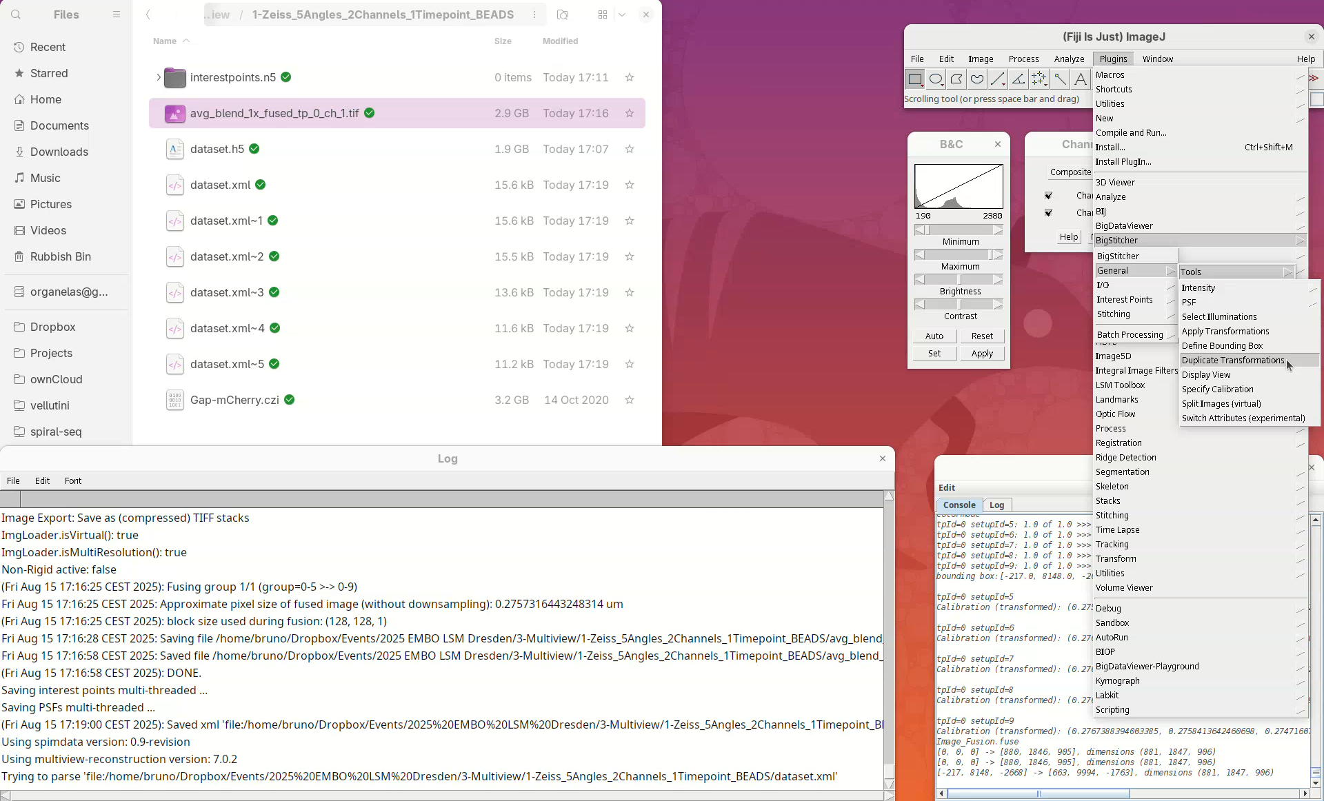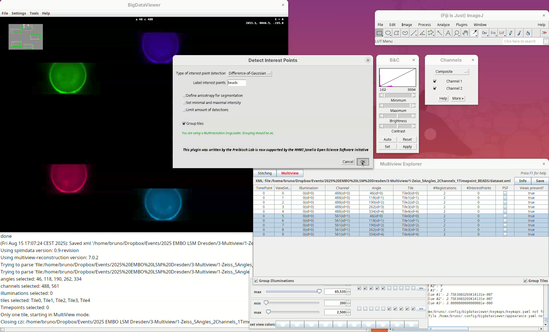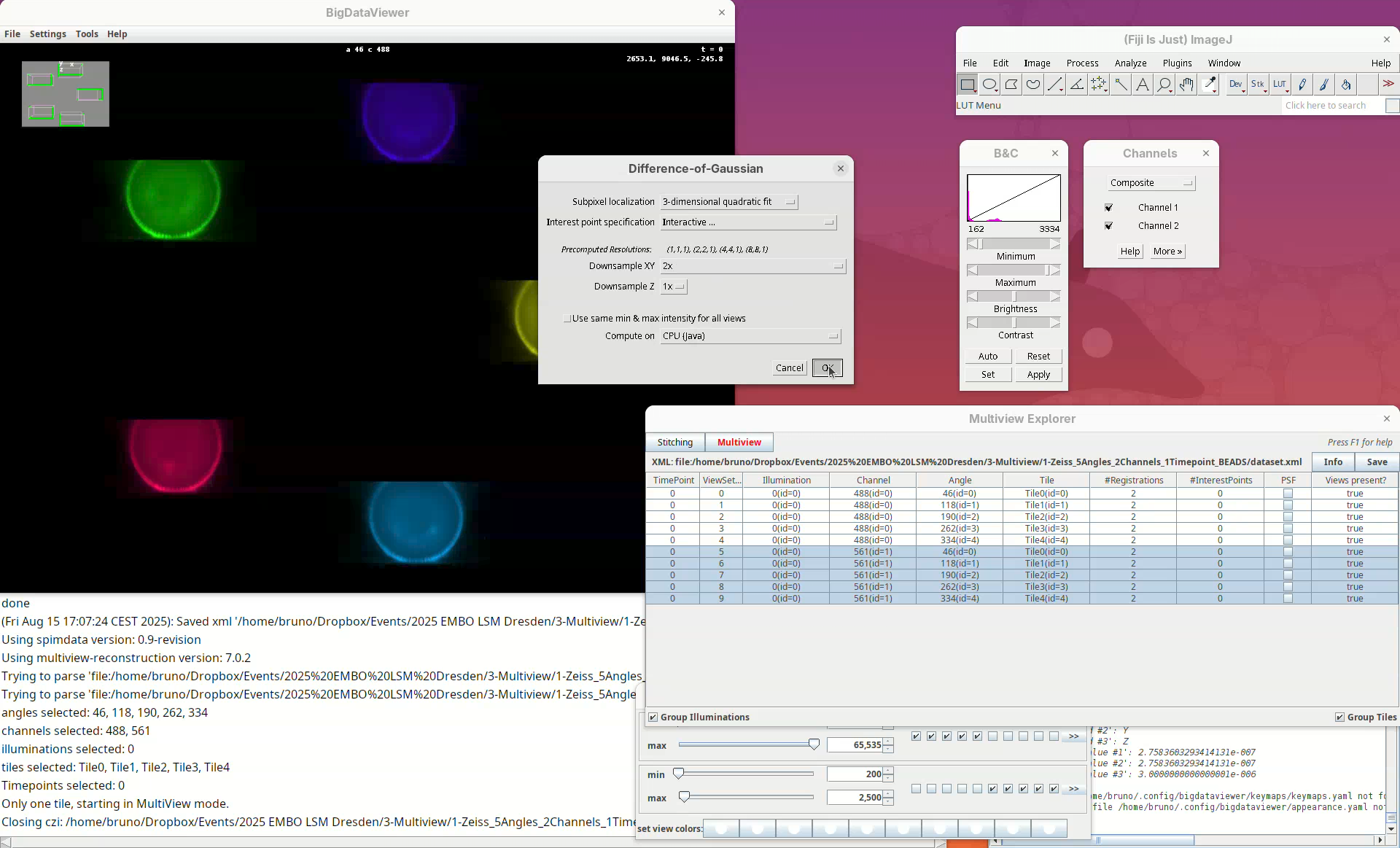 We will cover how to convert the raw data for visualization in the BigDataViewer (Pietzsch et al. 2015), how to best detect interests points for registration, the different approaches to register views, and how to fuse the views to reconstruct an isotropic dataset.