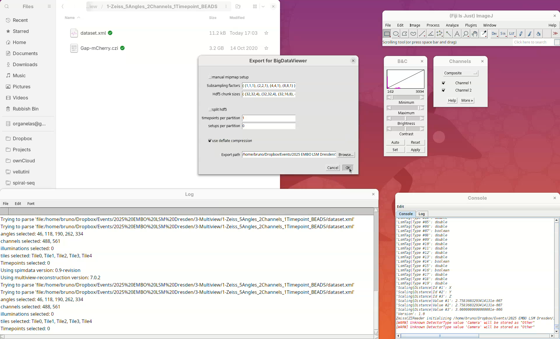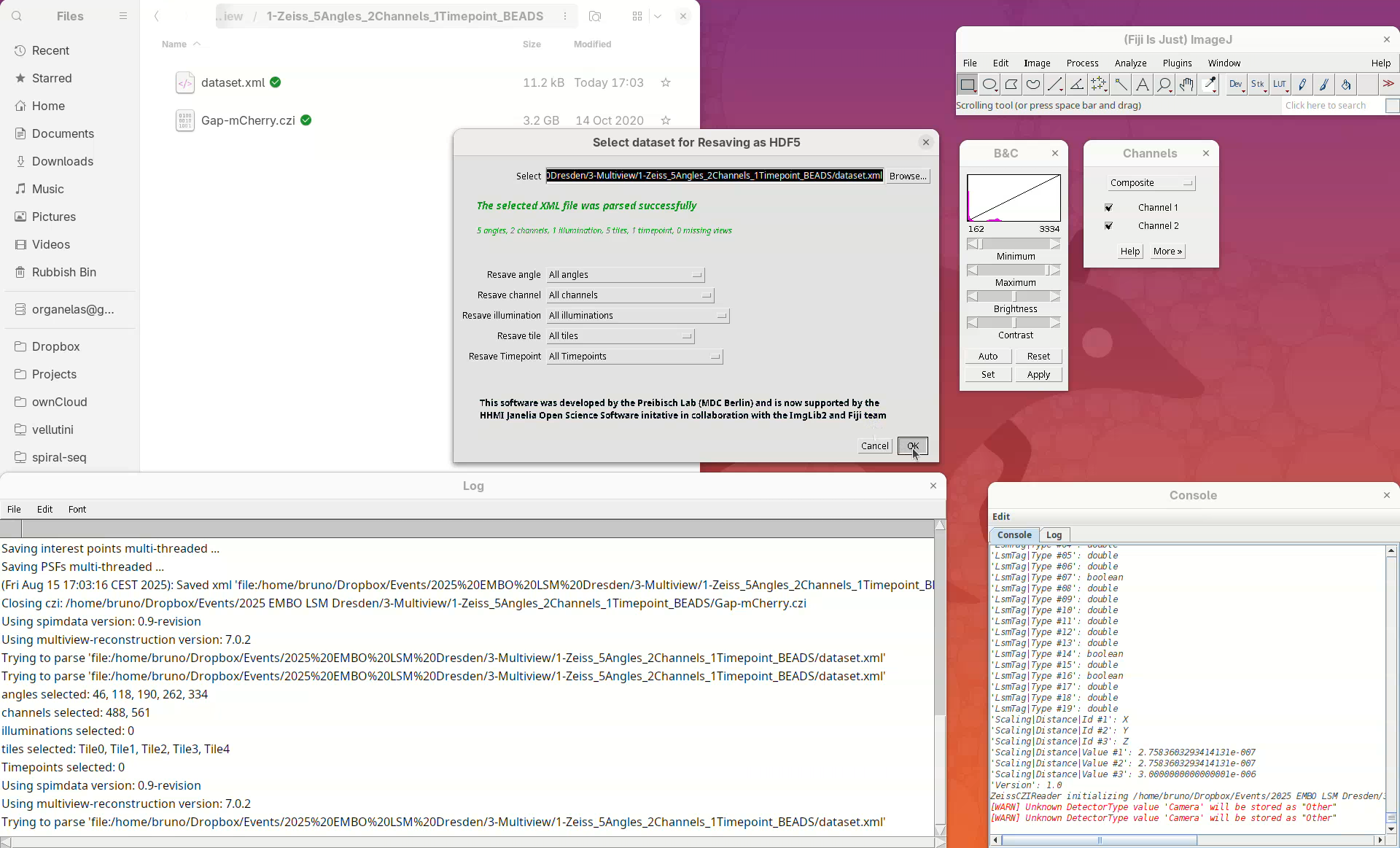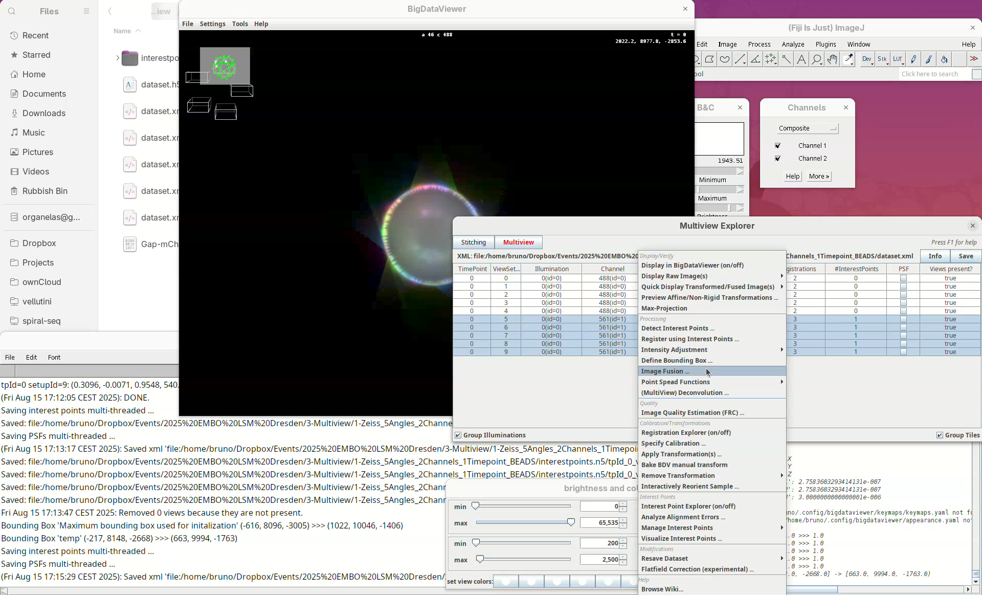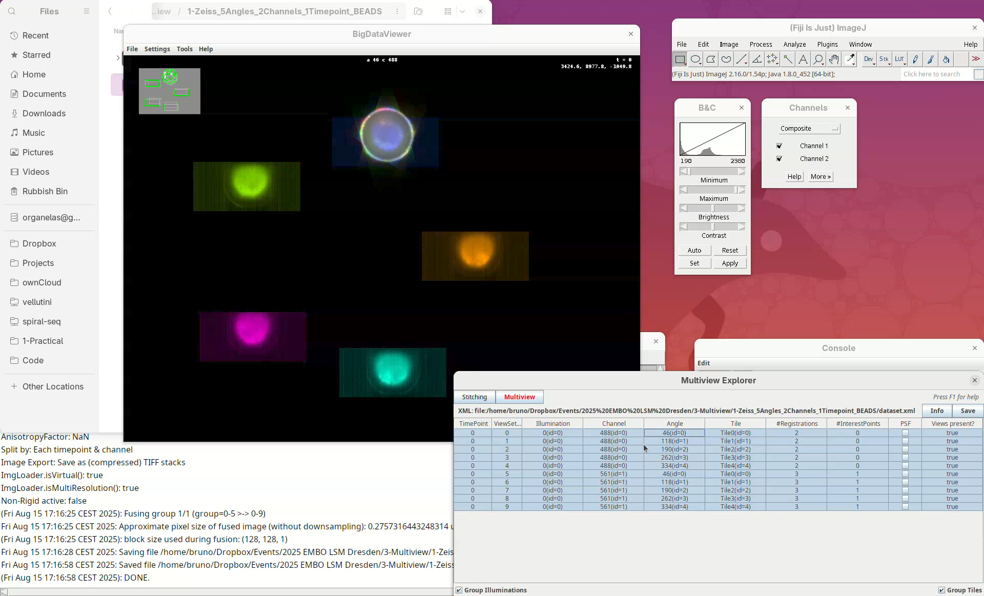 We will cover how to convert the raw data for visualization in the BigDataViewer (Pietzsch et al. 2015), how to best detect interests points for registration, the different approaches to register views, and how to fuse the views to reconstruct an isotropic dataset.
