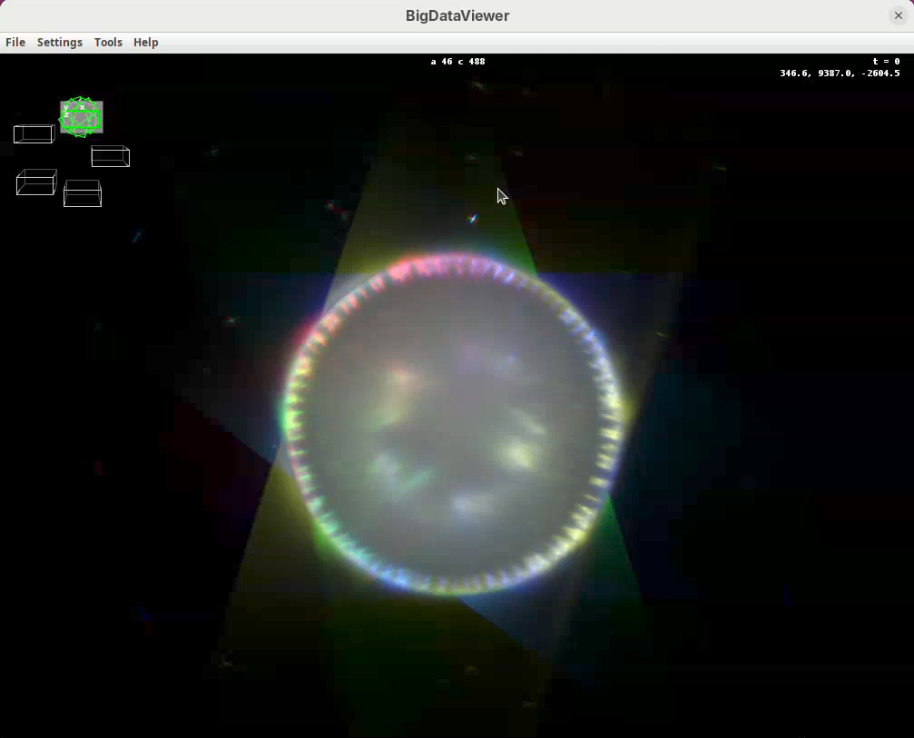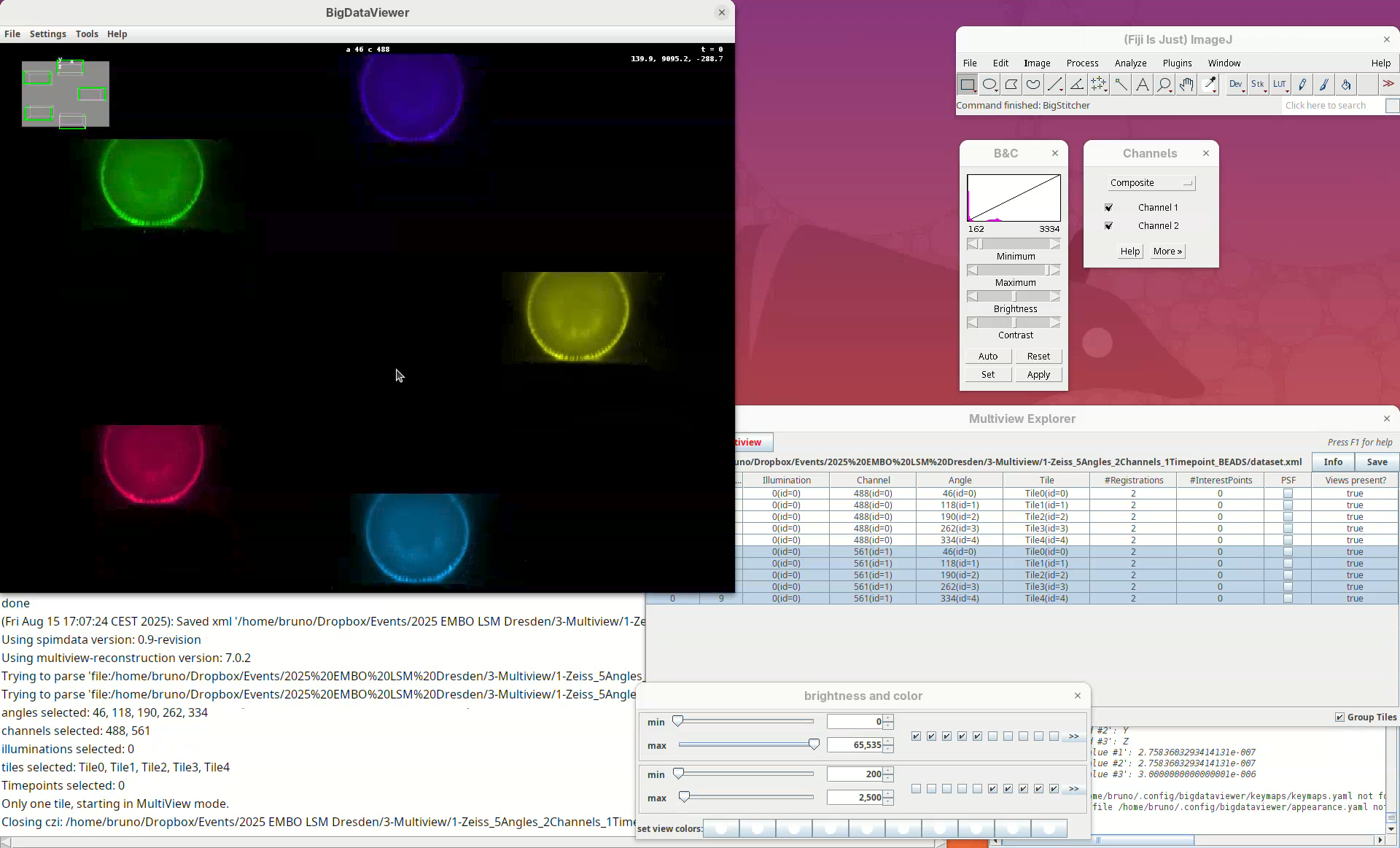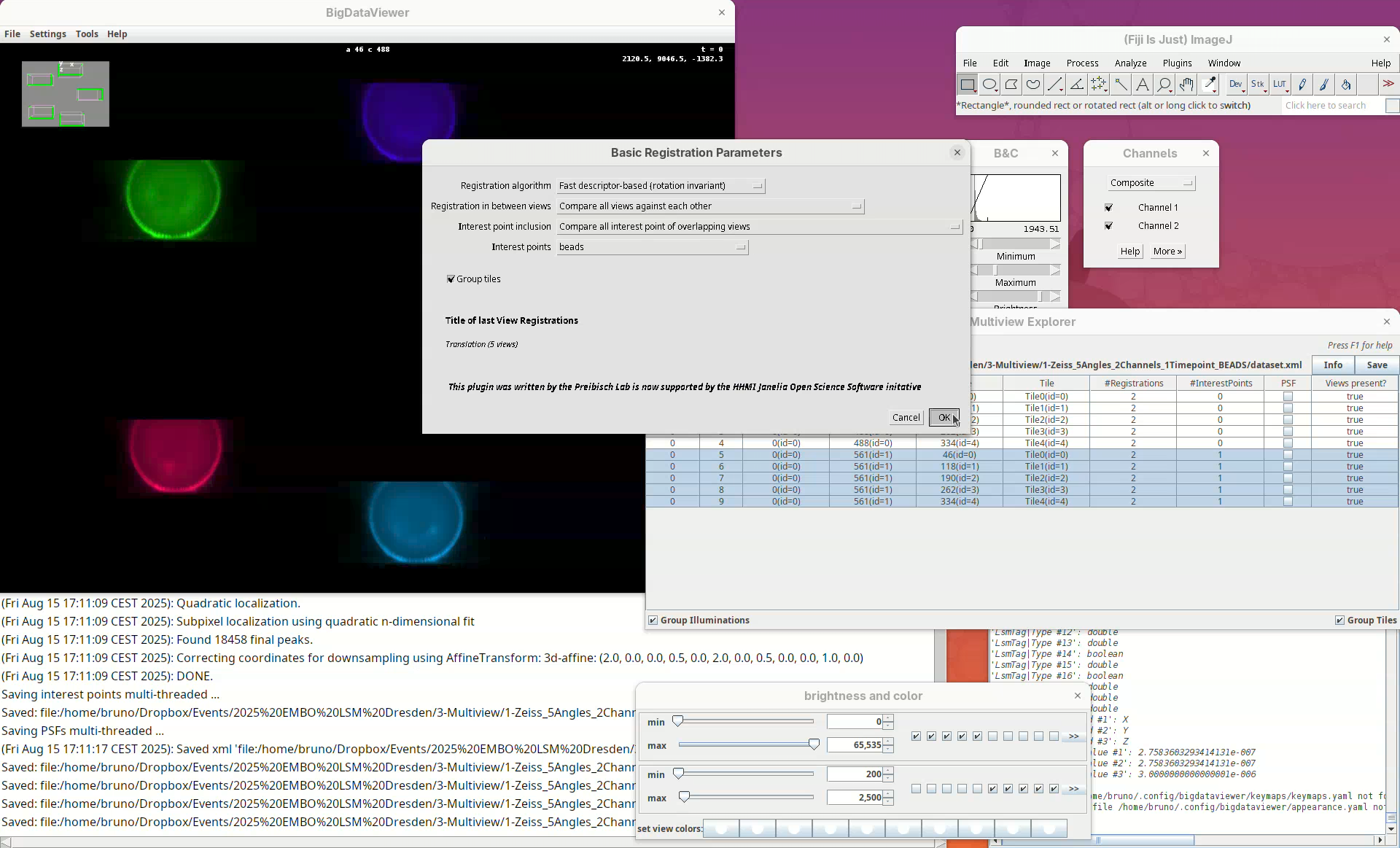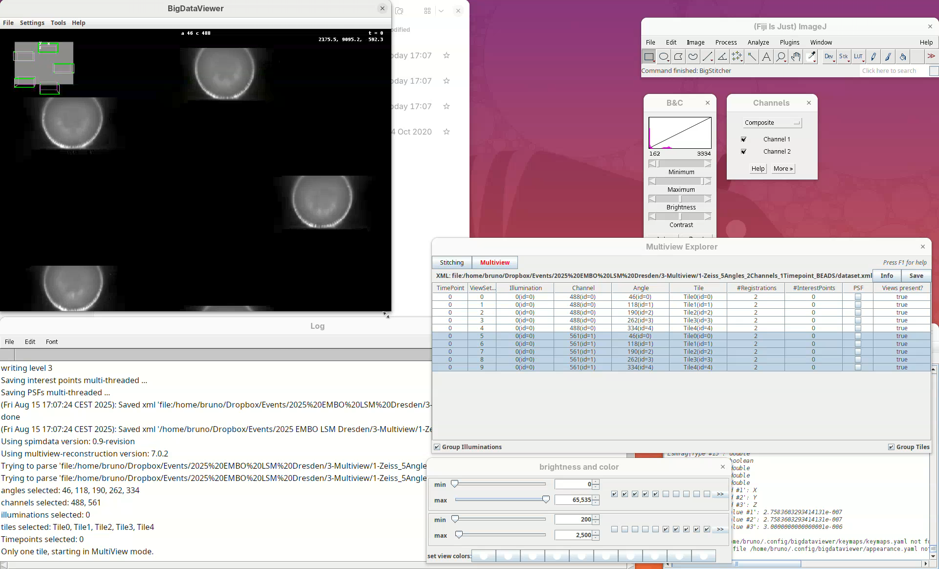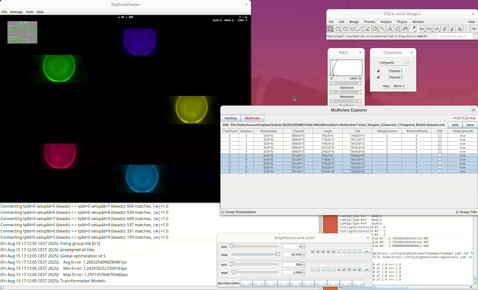 - Open BigStitcher again and check if the 5 views of the other channel are registered (they should be).