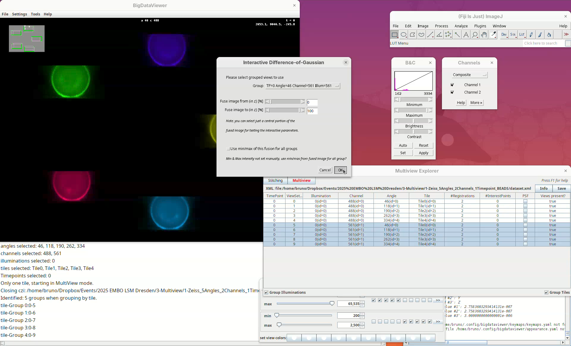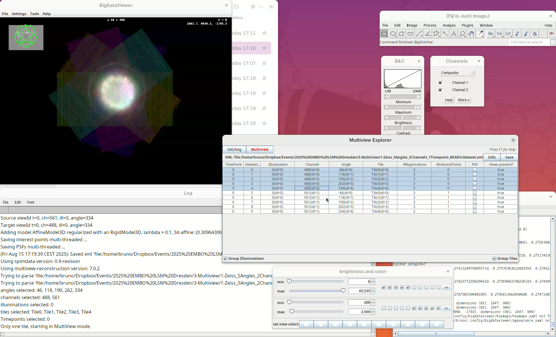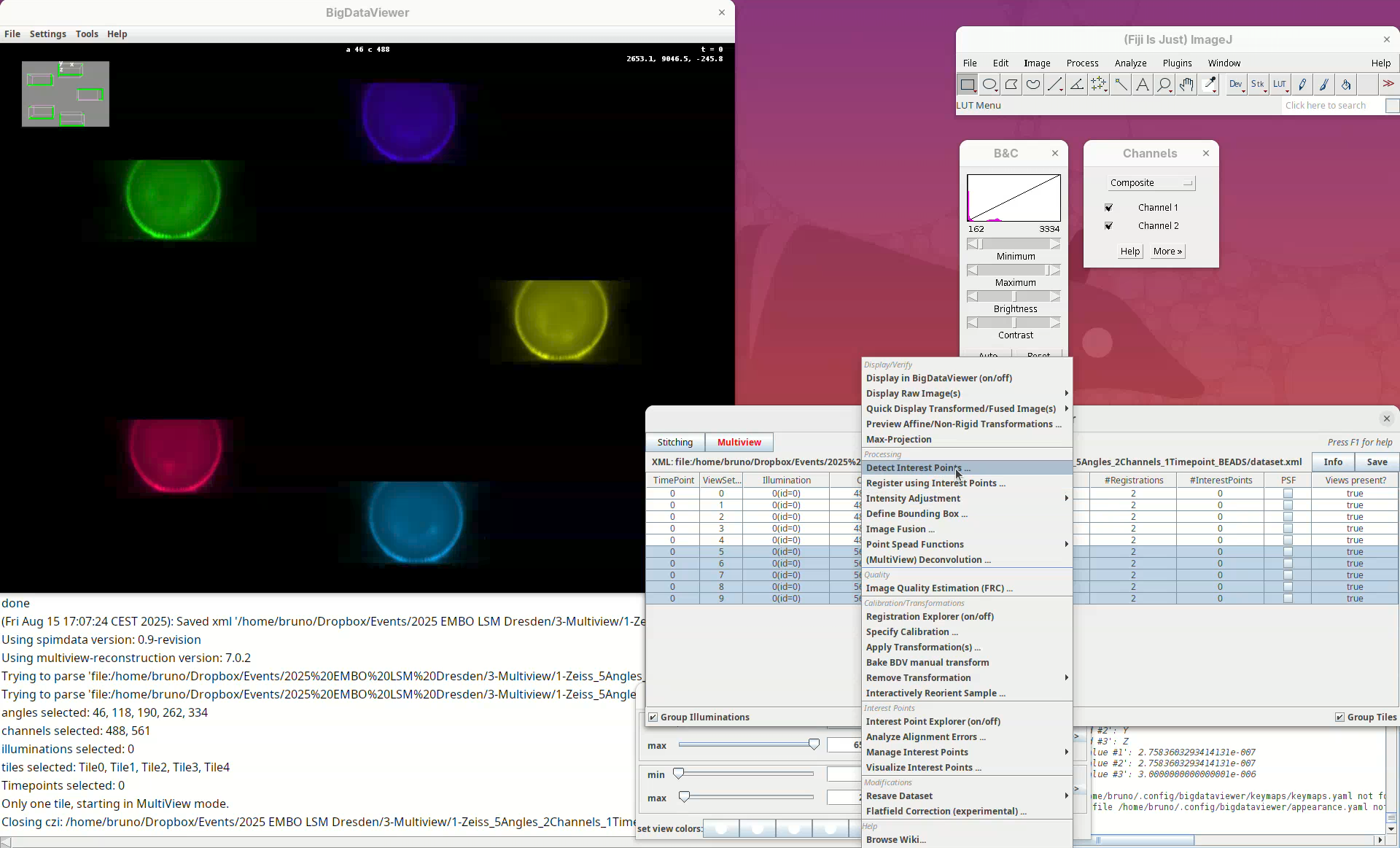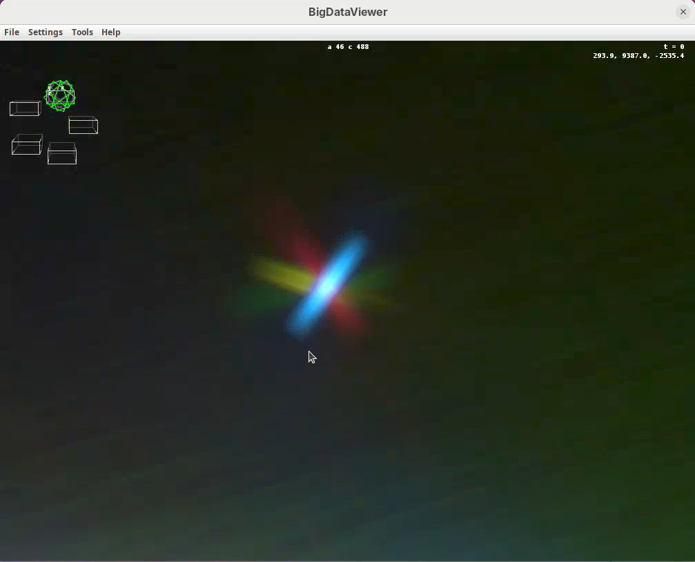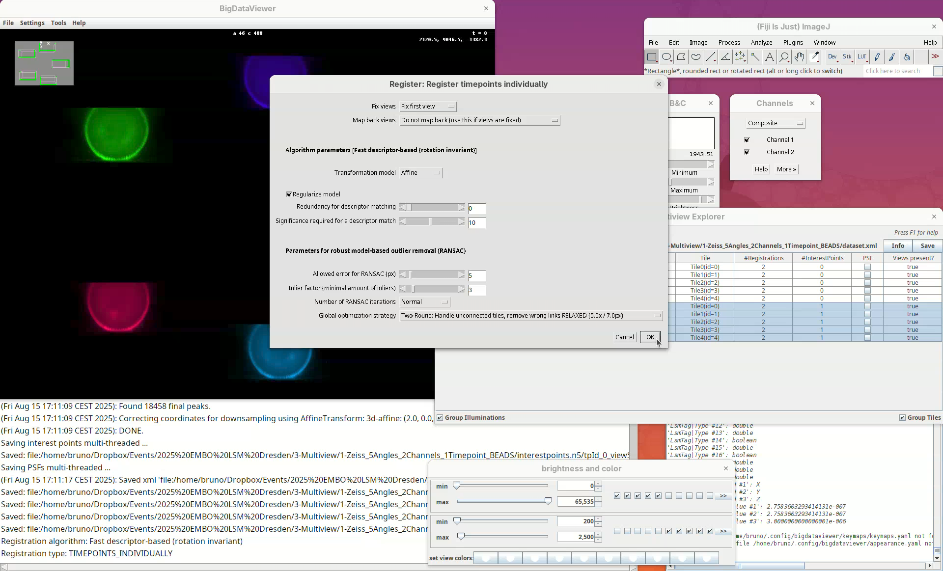 - Open BigStitcher again and check if the 5 views of the other channel are registered (they should be).