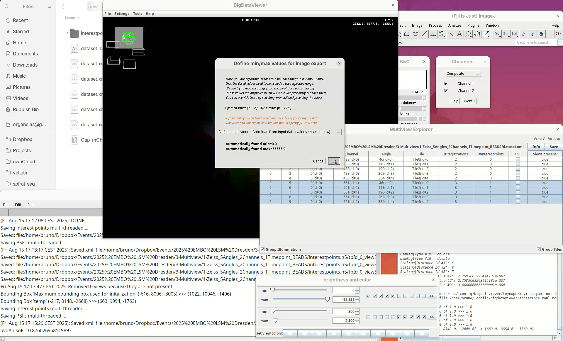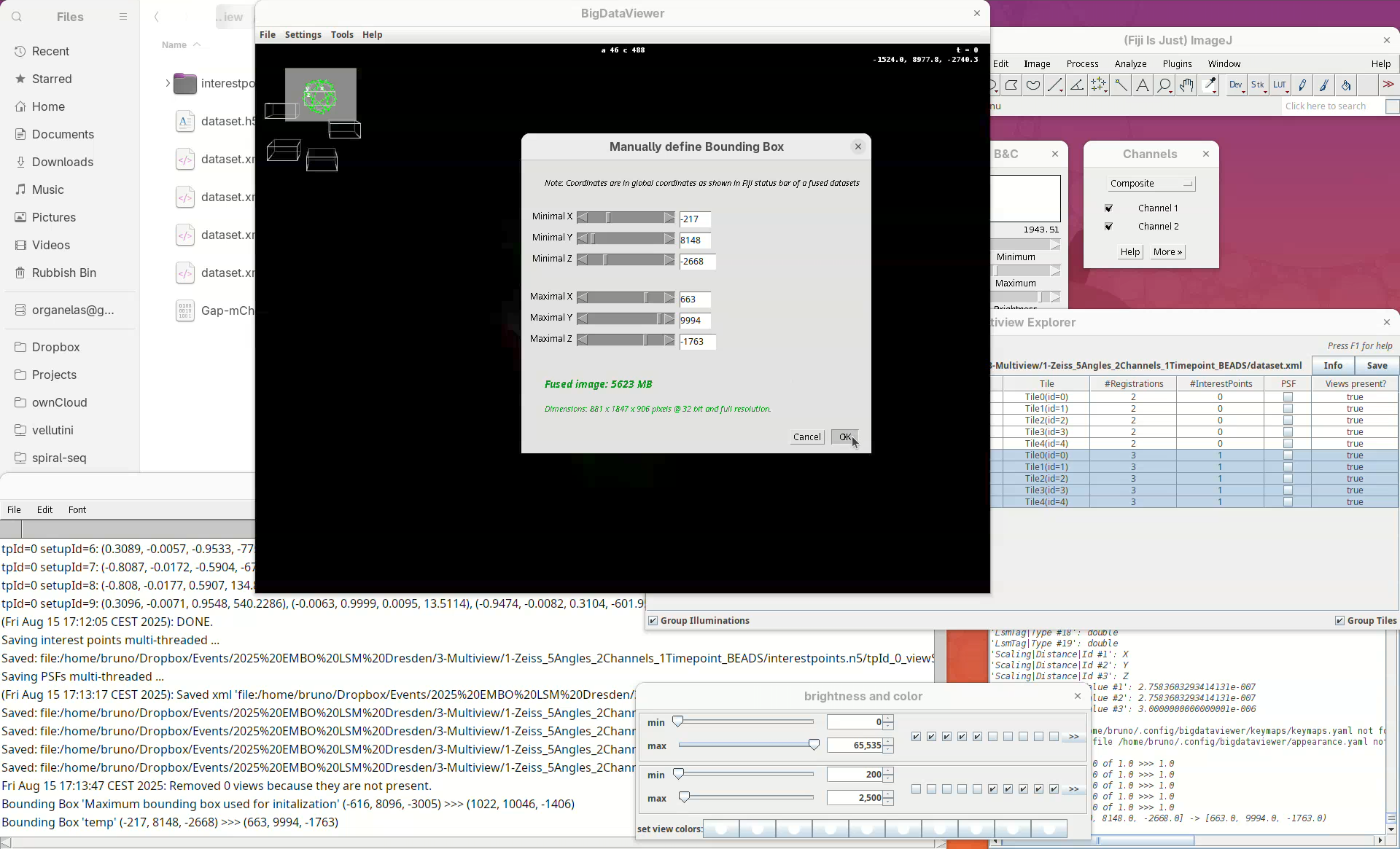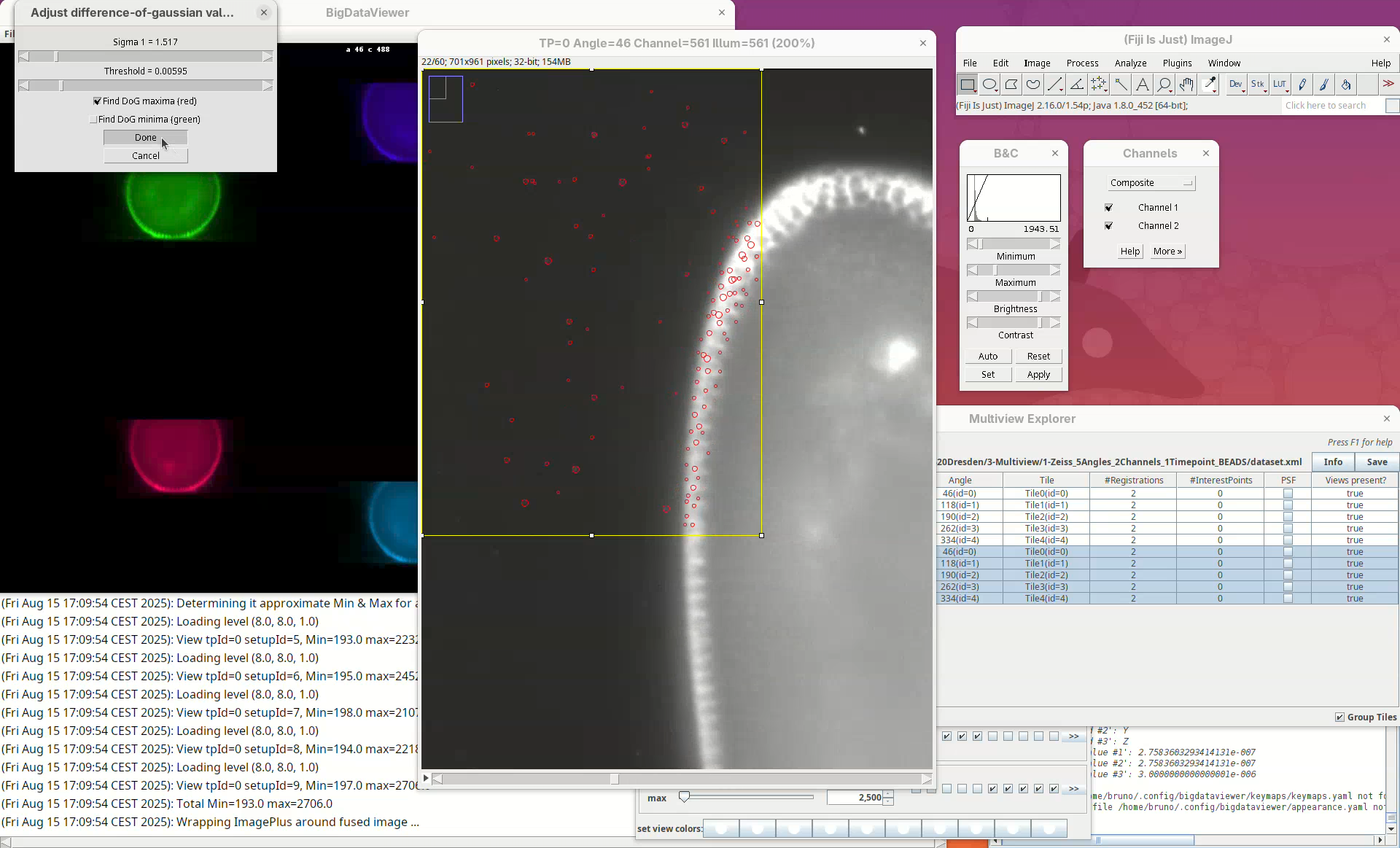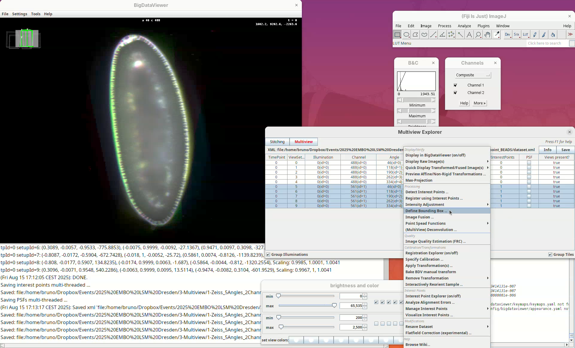 - Open BigStitcher again and check if the 5 views of the other channel are registered (they should be).