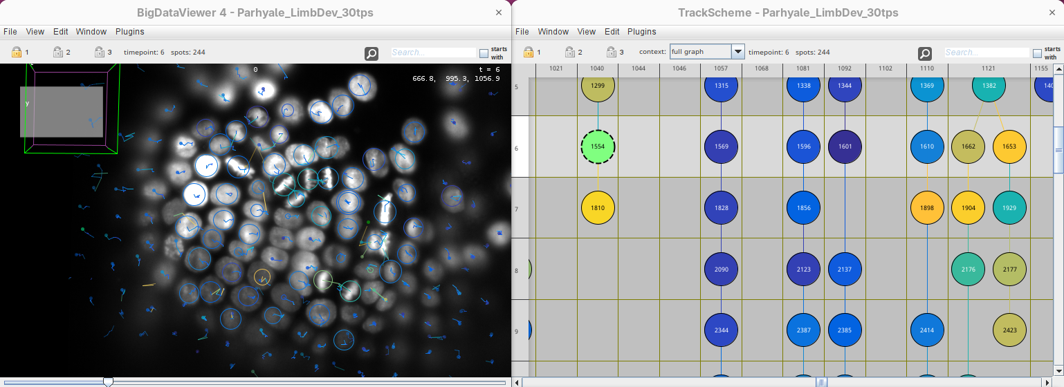 BigDataViewerwindow to be side-by-side with theTrackScheme. - Click on the